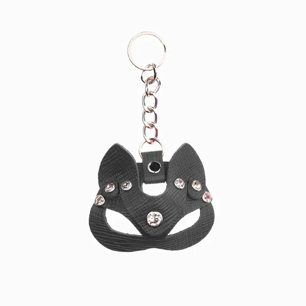 —Брелок - маска кошки со стразами, чёрная