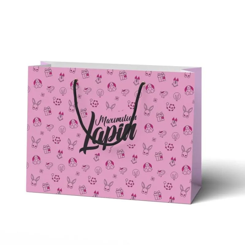 Брендированный бумажный подарочный пакет от Pink Rabbit размером 24*33*8 см.