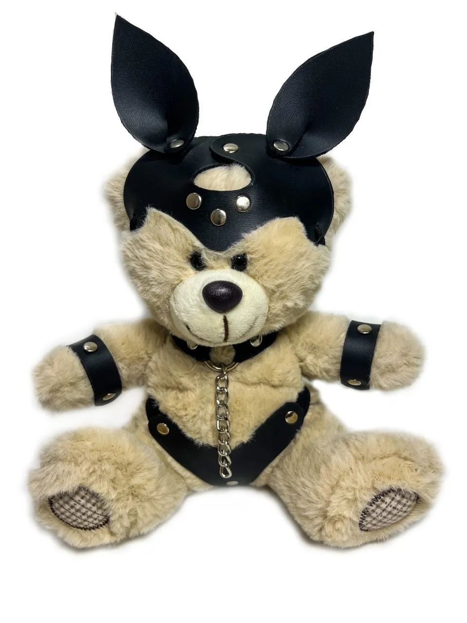 Миниатюрный БДСМ Мишка  в очень симпатичном образе. Великолепная идея для подарка или оригинального элемента в интерьере. Этот малыш сразит Вас своим обаянием! Высота медвежонка 20см. Костюмчик выполнен из искусственной кожи. Цвет мишек серый.