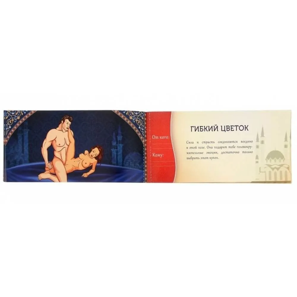 Горячие купоны "Ночь камасутры" от компании Сима Ленд дадут Вам множество идей для проведения незабываемого вечера и помогут полностью раскрепоститься! Выберите купон с понравившейся позой и вручите его своему партнеру, чтобы по-новому насладиться друг другом. В комплекте Вы найдете 20 купонов для него и для нее с описанием сексуальных, которые откроют вам новые грани получения удовольствия. Дарите горячие купоны, и предвкушайте самую бурную ночь в своей жизни!