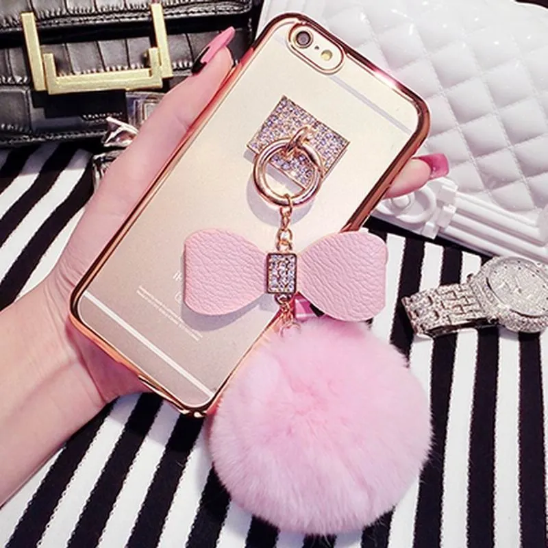 Чехол с бантом и помпоном на iPhone 6-6S, розовый