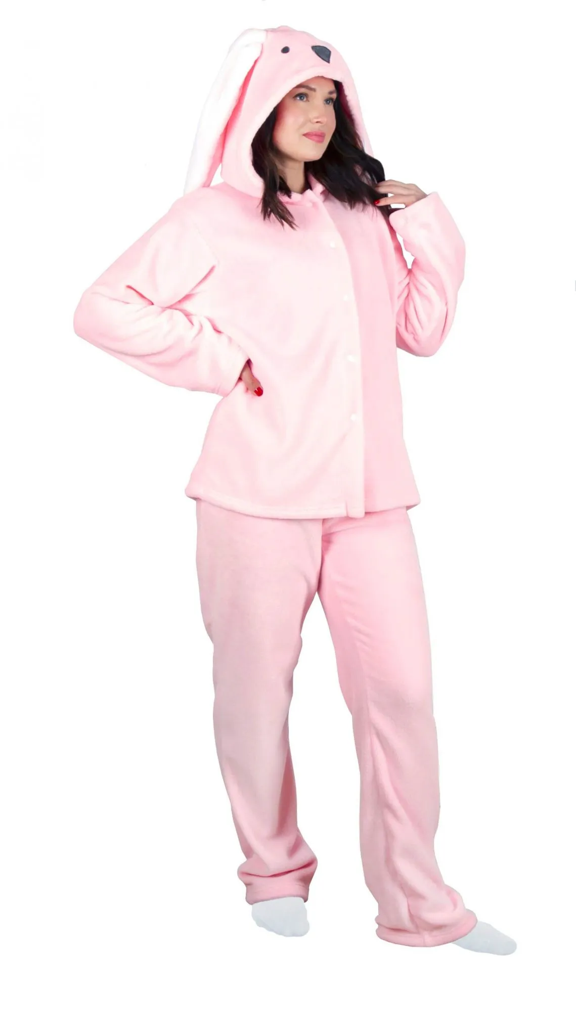 Весёлая пижама в виде зайки - это уютное и оригинальное решение для дома. Комплект состоит из штанов и толстовки на молнии с мордочкой и ушками на капюшоне. Она подойдёт для пижамных вечеринок, карнавалов и просто повеселит вас!