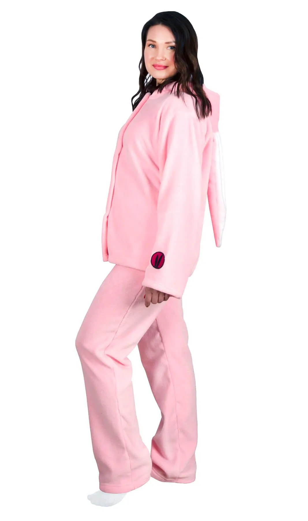 Весёлая пижама в виде зайки - это уютное и оригинальное решение для дома. Комплект состоит из штанов и толстовки на молнии с мордочкой и ушками на капюшоне. Она подойдёт для пижамных вечеринок, карнавалов и просто повеселит вас!
