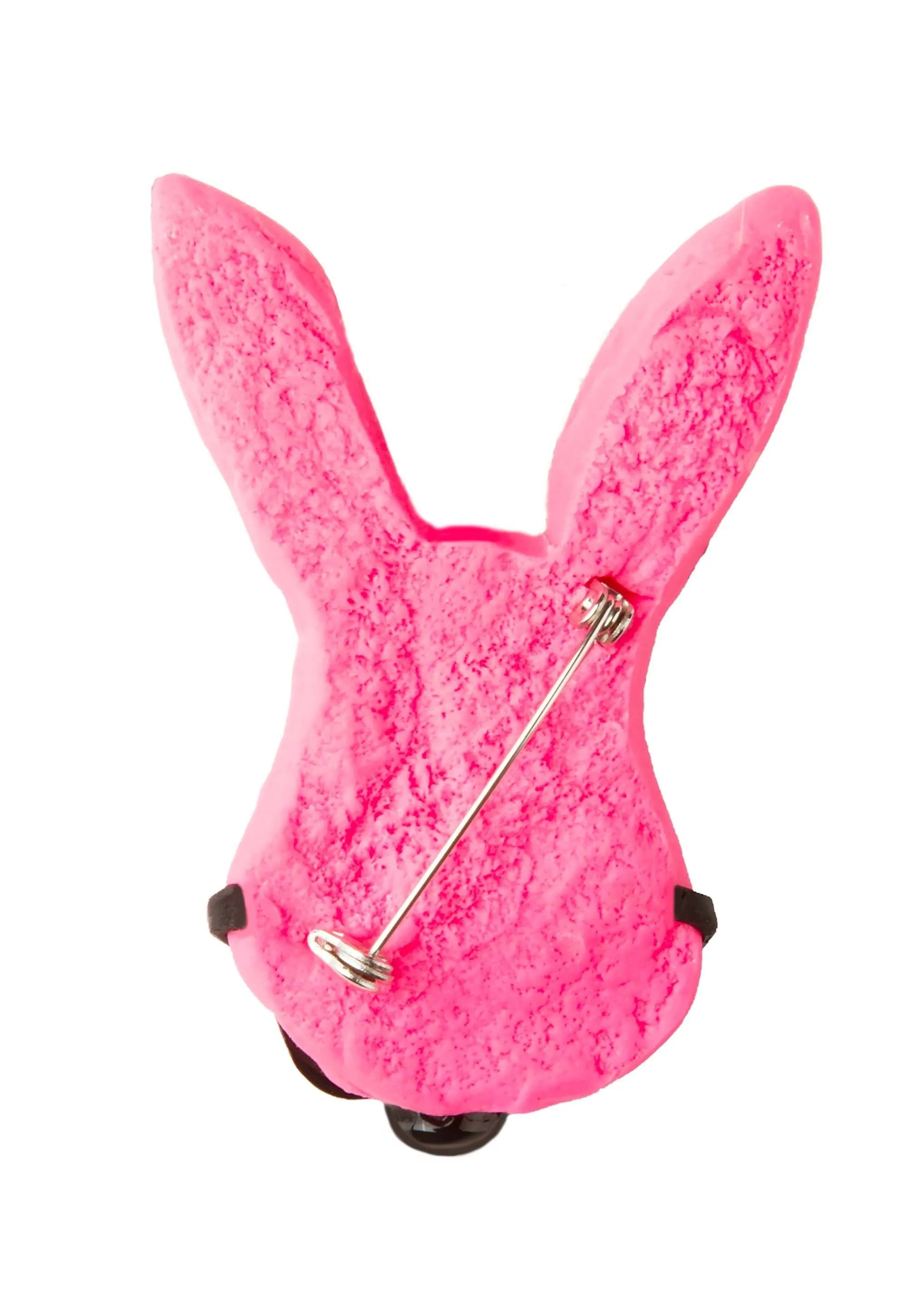 —Брошь Розовый кролик с черным кляпом на булавке
