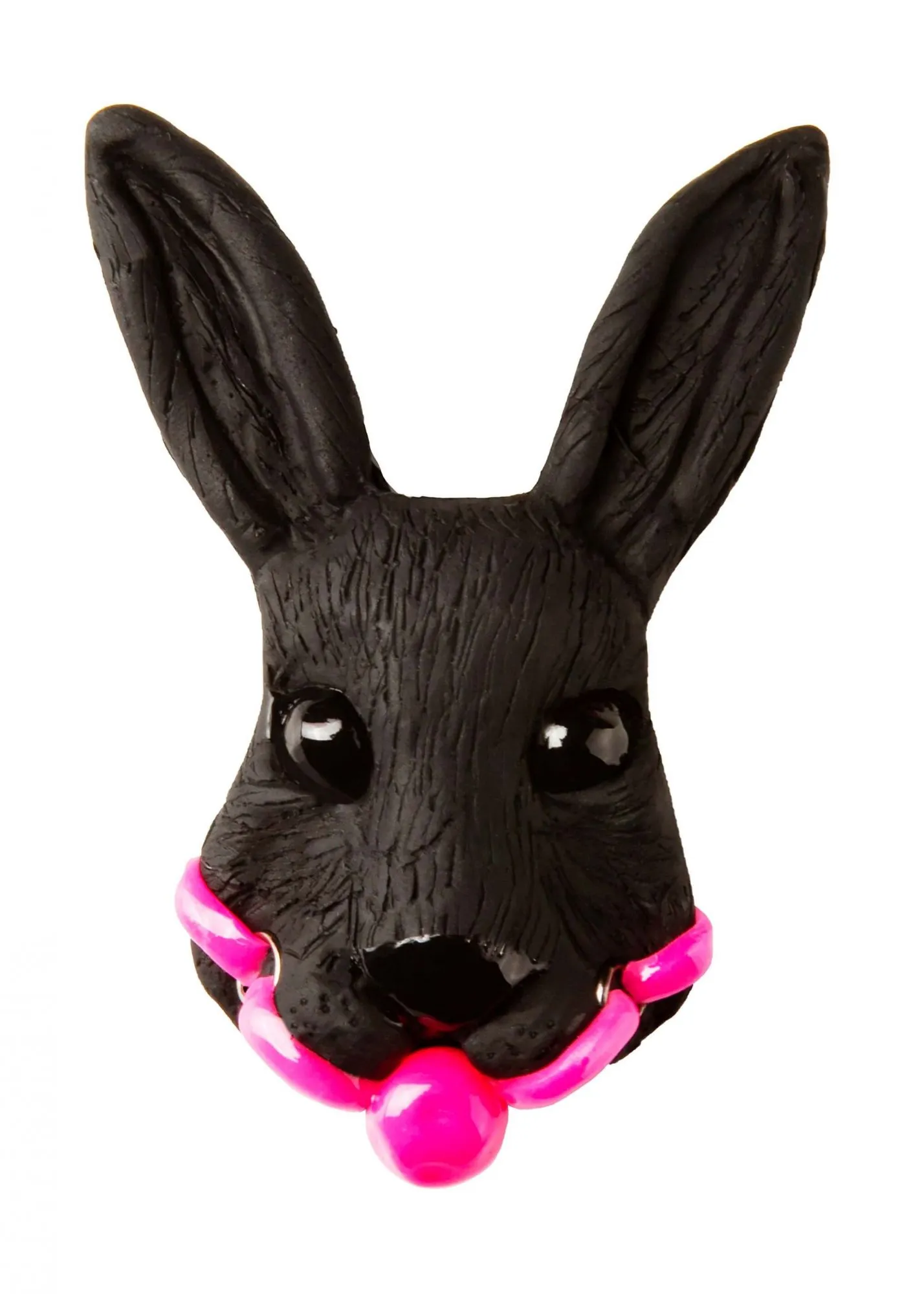 Брошь Черный кролик с розовым кляпом на булавке
