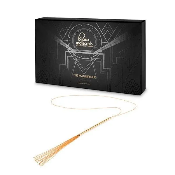 Элегантное ожерелье-кнут из серии Magnifique от бренда Bijoux Indiscrets - это необычный аксессуар, который можно использовать и как украшение, и как плетку. Дизайн аксессуаров из серии Magnifique был навеян танцовщицами кабаре в Нью-Йорке двадцатых годов, чья чувственность и соблазнительность присутствовали в каждой детали их образа. При выходе в свет ожерелье подчеркнет Вашу элегантность и уникальный стиль, а в приватной обстановке с партнером оно превратится в оружие соблазнения. При желании Вы сможете снять ожерелье и превратить его в кнут, при помощи которого будете нежно ласкать или наказывать возлюбленного. Контраст между холодной металлической цепочкой и разгоряченной кожей приятно удивит Вашего партнера.