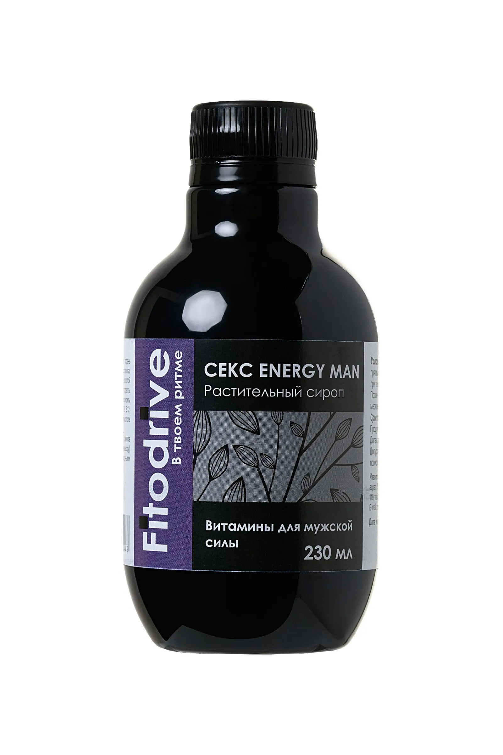 Какова цена отличного настроения, жизнерадостности, сексуальной активности и мужского здоровья? Ловите себя на том, что ощущаете усталость, апатию и отсутствие желания? Растительный сироп для мужчин “Секс energy man” Fitodrive от Алвитта - 100% потенция, источник мужской силы, уверенности в себе, готовности покорять женские сердца и удовлетворять даже самые смелые сексуальные желания возлюбленной. Это необыкновенно мощное по своему воздействию средство для нормализации потенции. “Секс energy man” способствует нормализации работы мужского достоинства при нарушении эрекции (единичном или хроническом), снижении либидо, отсутствии чувства удовлетворения при половой близости, а также при непроизвольной и преждевременной эякуляции. Благодаря сбалансированному сочетанию целебных трав, способствующих выработке мужского гормона тестостерона и растений-афродизиаков пролонгировано воздействует на источники проблем в половой сфере, возникшие под воздействием как психологических, так и физиологических факторов. Активные компоненты: красный корень, тонгкат али, женьшень, родиола розовая, левзея, элеутерококк, зверобой, подорожник, иван-чай, имбирь, таурин, кофеин. Рекомендации по применению: по 2-3 чайные ложки сиропа (10-15 мл) добавлять в напитки (чай, кофе, вода) для усиления вкуса и обогащения организма природными компонентами. Перед применением взболтать. Пищевая ценность на 100 г продукта: углеводы 50,0 г. Энергетическая ценность на 100 г продукта: 200 ккал/ 830 кДж. Продукт не содержит ГМО. Условия хранения: хранить в защищенном от прямых солнечных лучей и недоступном для детей месте, при температуре не выше 25°С и относительной влажности не более 75%. После вскрытия хранить в холодильнике не более 3 месяцев. Срок годности: 18 месяцев. Объем: 230 мл