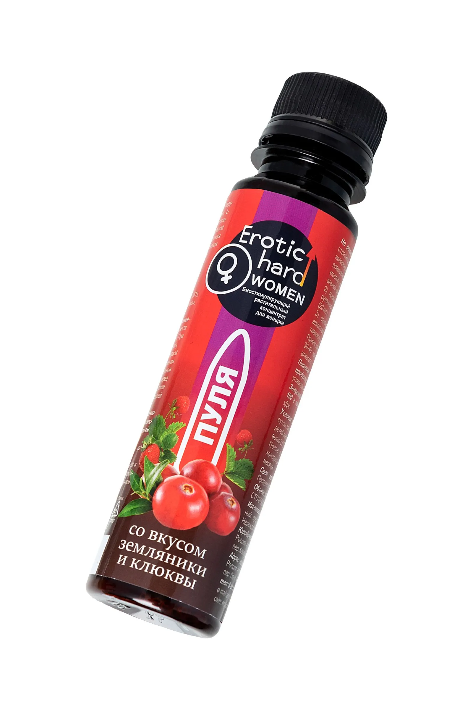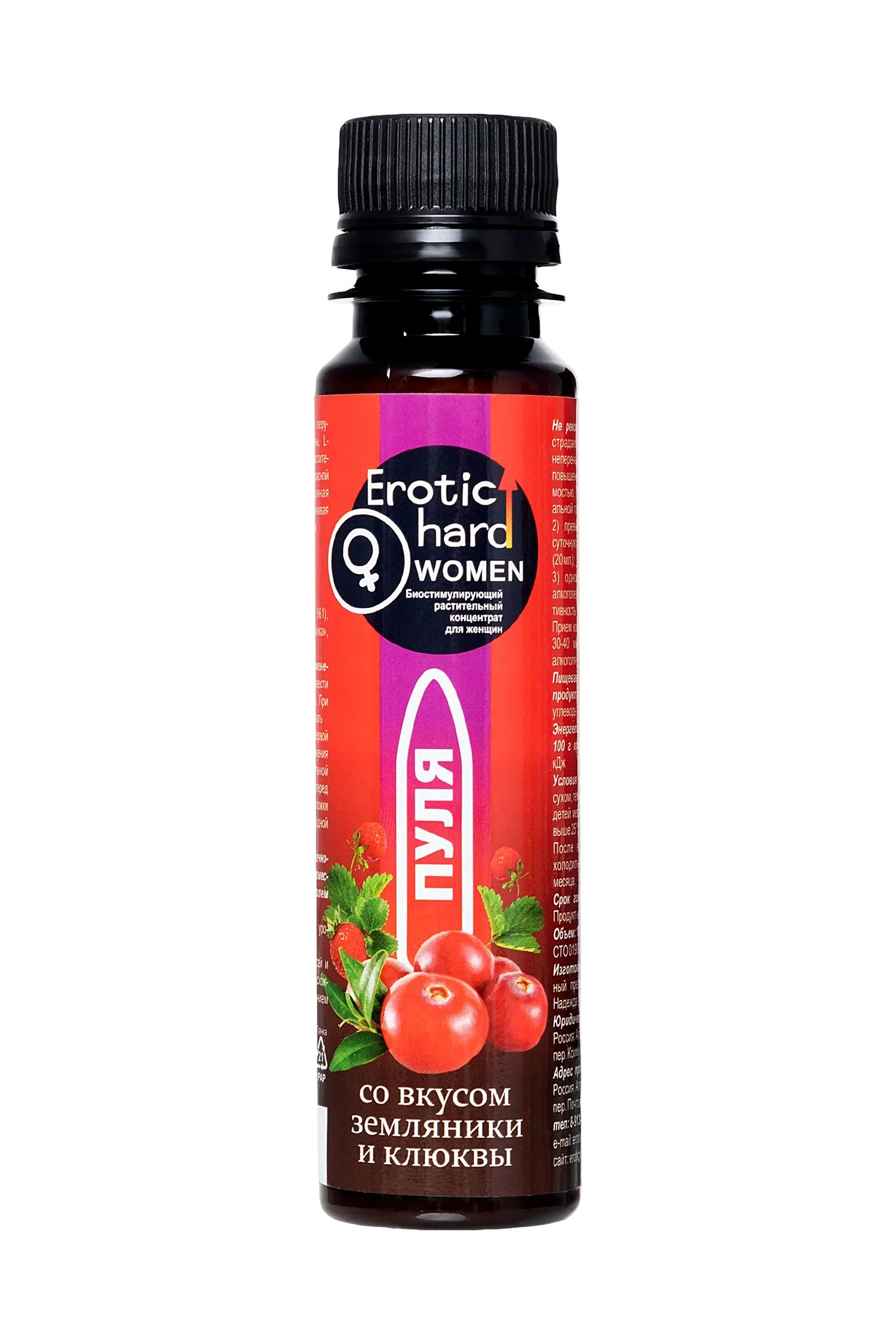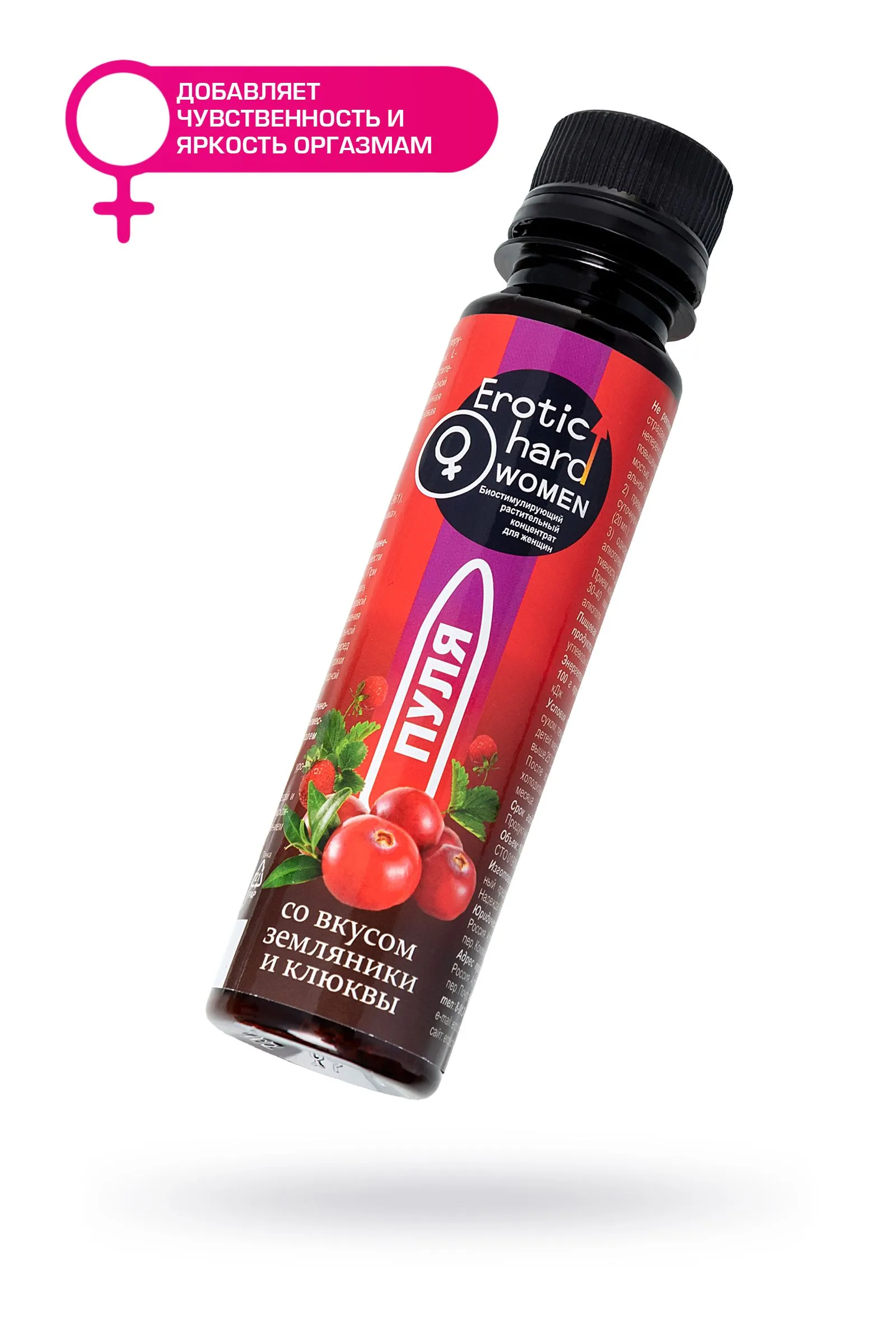Биостимулирующий концентрат для женщин Erotichard, «Пуля», земляника, клюква, 100 мл