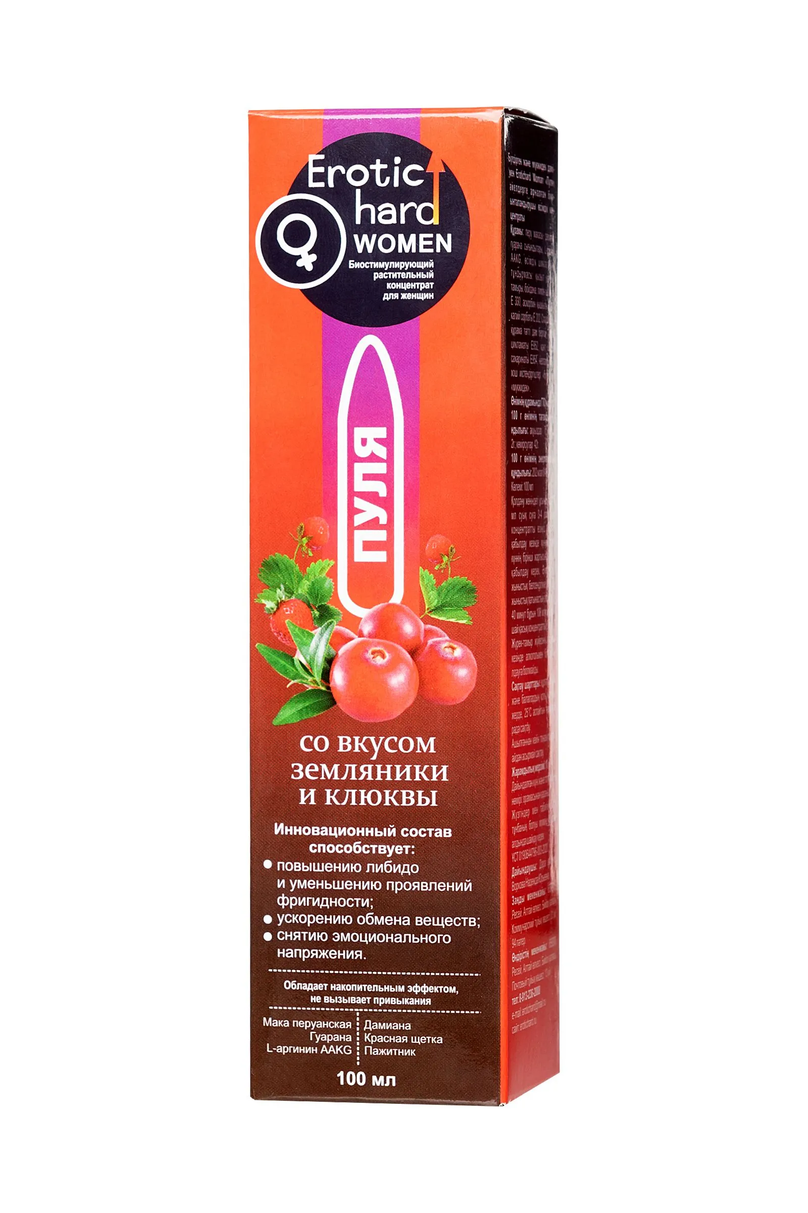 —Биостимулирующий концентрат для женщин Erotichard, «Пуля», земляника, клюква, 100 мл
