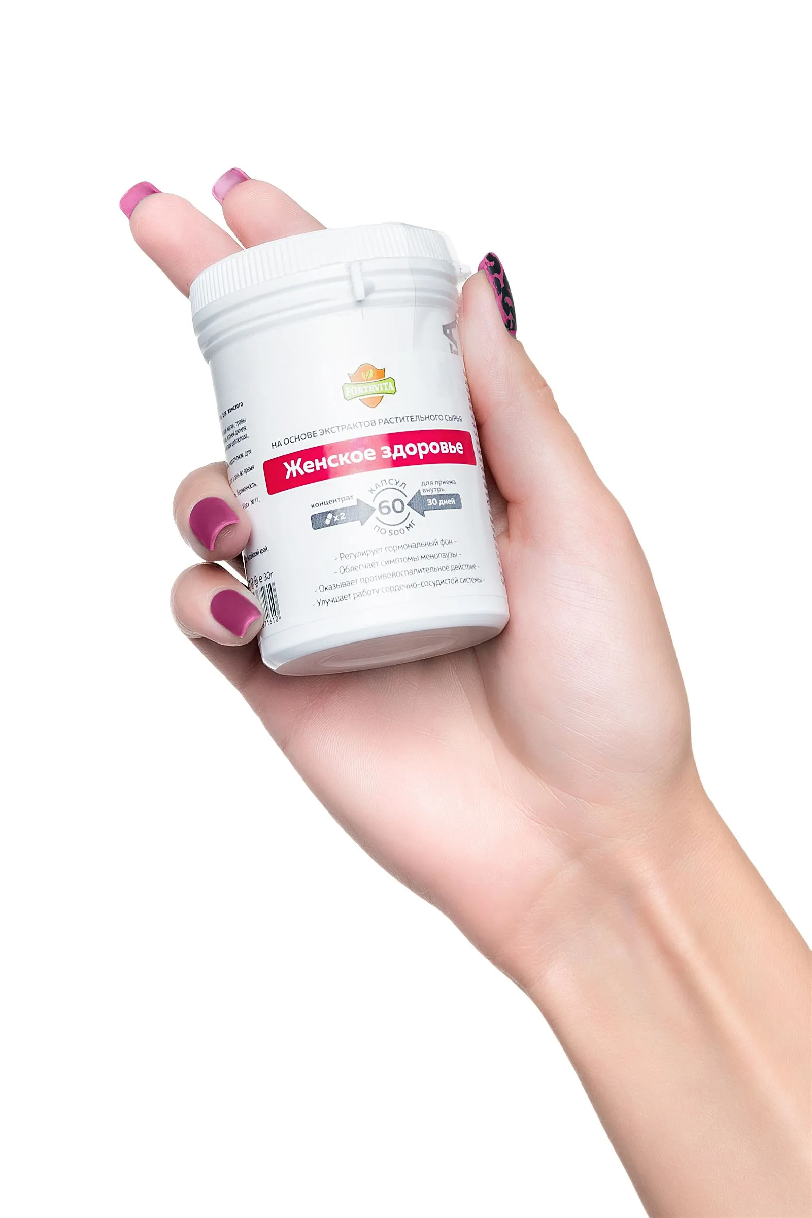 «ForteVita» «ЖЕНСКОЕ ЗДОРОВЬЕ» 60 капсул по 500 мг Все самое лучшее, что может дать природа для женского здоровья, собрано в биологически-активной добавке ForteVita "Женское здоровье". Поддерживать молодость, красоту и активный образ жизни помогает концентрат Женское здоровье. Принимая по 1 капсуле 2 раза в день во время еды в течение 30 дней, вы почувствуете прилив энергии, улучшение умственной и физической активности. Сочетание целебных трав и растений-афродизиаков положительно действует на либидо и гормональный фон, что особенно важно в период менопаузы. Сочетание экстрактов корней красной щётки, листа боровой матки, травы душицы, листа дамианы, травы вербены, травы горянки, корней дягиля, травы пустырника, корней заманихи не только активирует иммунную систему организма в целом, но и обладает противовоспалительным действием улучшает эндокринную функцию и нормализует гормональный баланс ускоряет обмен веществ и бережет нервную систему стимулирует половое влечение и качество секса помогает сконцентрироваться и повысить работоспособность влияет на антиоксидантную защиту организма дает яркие и длительные сексуальные ощущения в вашей интимной жизни. Проявите свою природную сексуальность и чувственность по-новому. Быть страстной, желанной и порхающей – все это дает Женское здоровье ForteVita. Активная и уверенная женщина, защищенная от стресса и усталости – откройте и выпустите свою внутреннюю Богиню. Противопоказания: индивидуальная непереносимость, беременность, кормление грудью. Количество в упаковке: 60 капсул Срок годности: 24 месяца