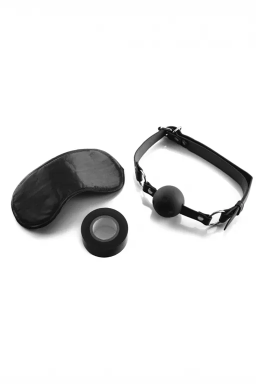 Bondage Set – набор для бондажа, который состоит из основных атрибутов для эротических ролевых игр и БДСМ практик. Набор состоит из трех элементов – маски на глаза, кляпа и бондажной ленты.