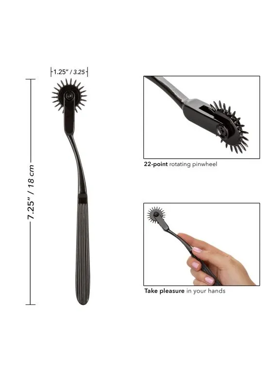 Колесо вартенберга Scandal Pleasure Wheel – аксессуар для эротических ролевых игр и БДСМ практик. Представляет собой одно массажное колесико, на котором располагаются 22 тонких шипа средней длины. Шипы обеспечивают покалывающие ощущения, которые напоминают легкие уколы иголки, касающейся кожи. Аксессуар изготовлен из сверхпрочного, не тускнеющего сплава.