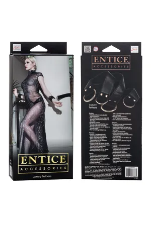 Entice Luxury Tethers - безопасные, прочные, чувственные ленты для фиксации на любой поверхности. Привязи изготовленны из сшитой вручную высококачественной искусственной кожи с дизайнерскими акцентами и прочными D-кольцами из металла цвета розового золота высшей пробы.