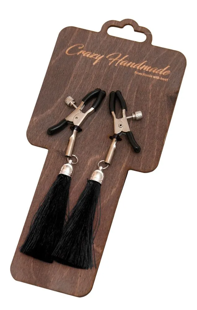 —Зажимы на соски PinkRabbit с кисточками из шелка, черные