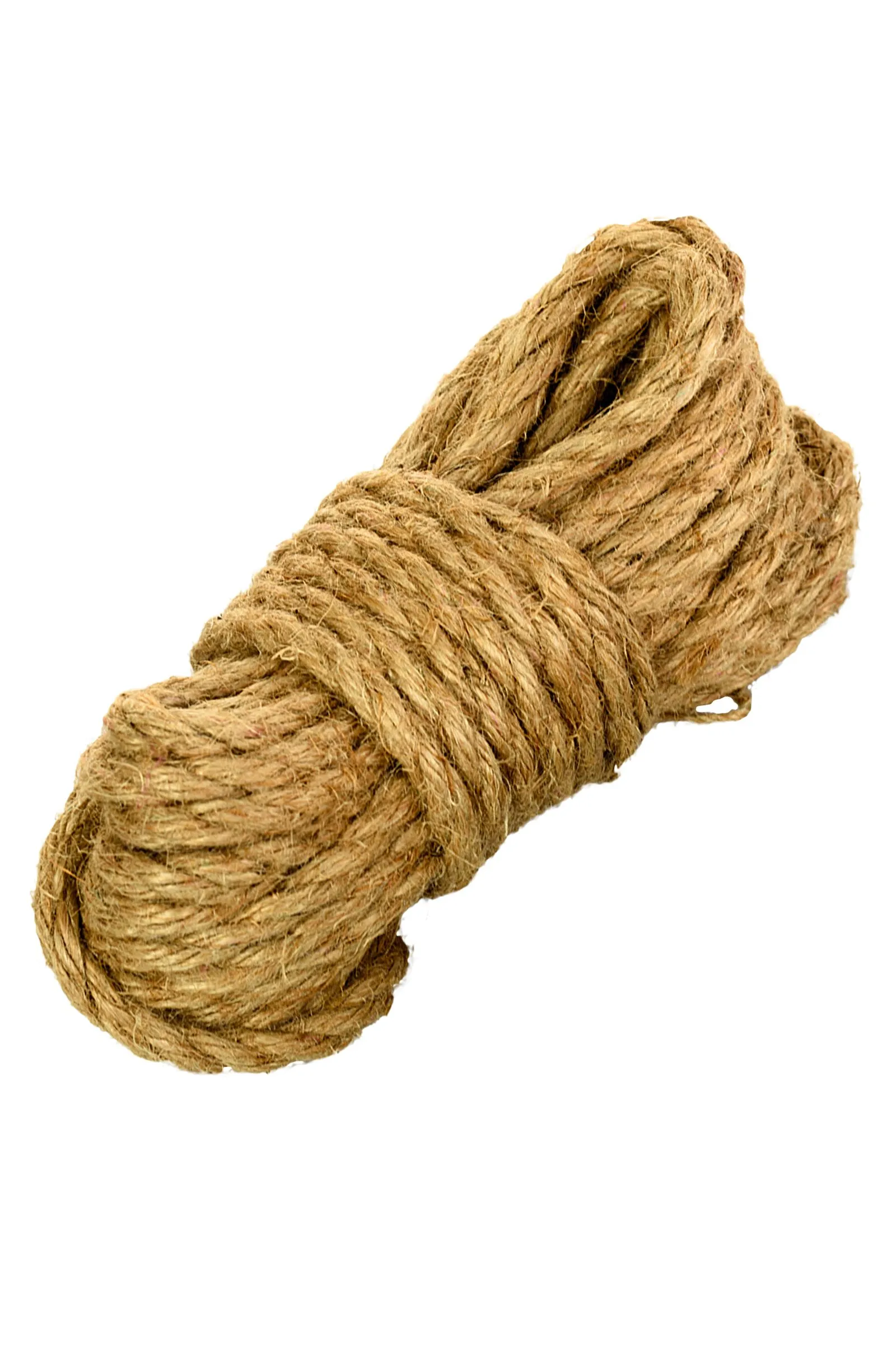 Джут - исторически "правильный" материал для изготовления бондажных веревок. Такая веревка немного колючая, и это дает дополнительную стимуляцию связываемому. Отрезок 10 метров можно использовать для обвязки тела и в комплекте с другими отрезками.