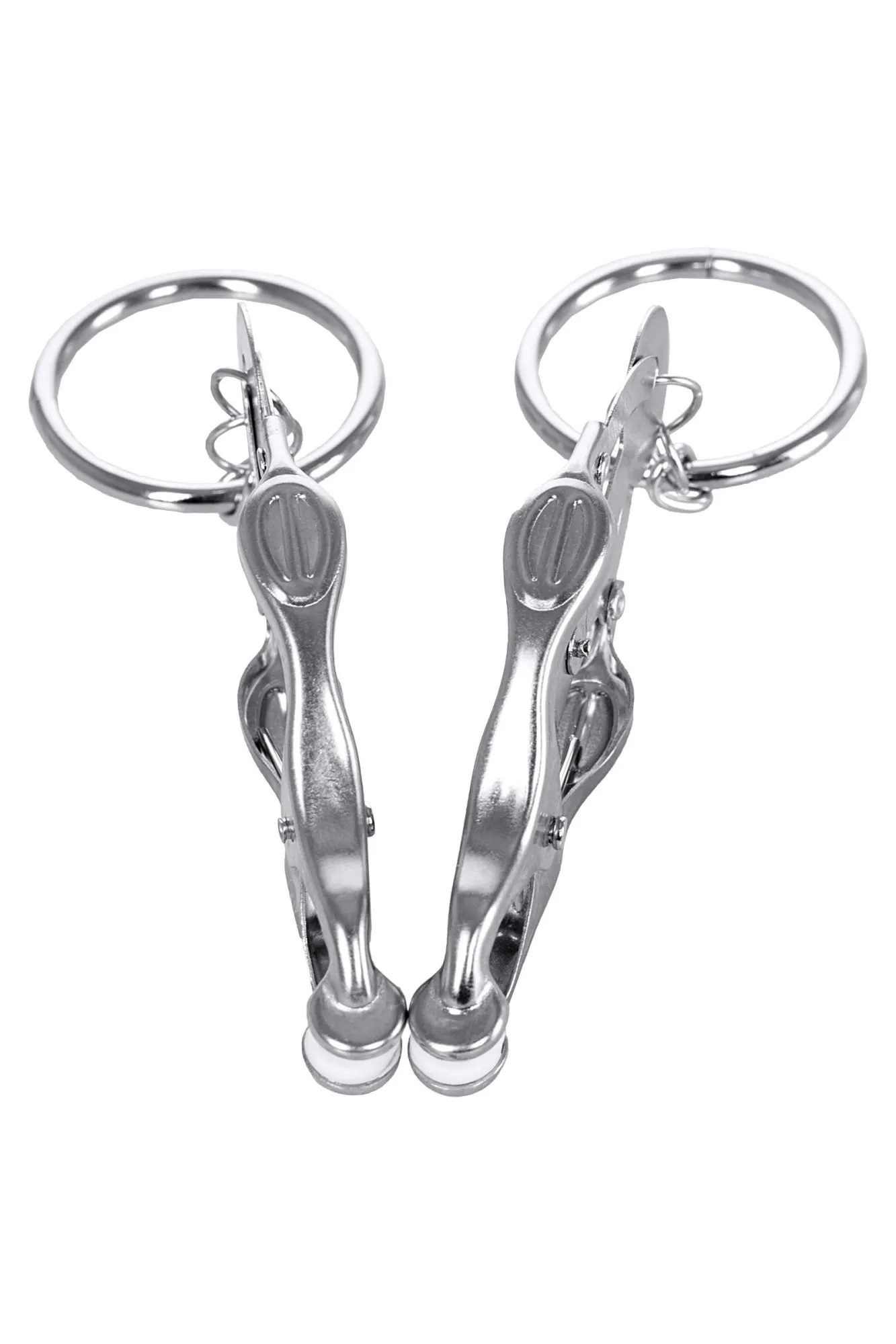 Зажимы для сосков с пружинным механизмом. Эта конструкция одна из самых жестких, но позволяет разнообразить игру: на кольцах можно подвесить дополнительные грузы или украшения. Все зависит от ваших желаний!