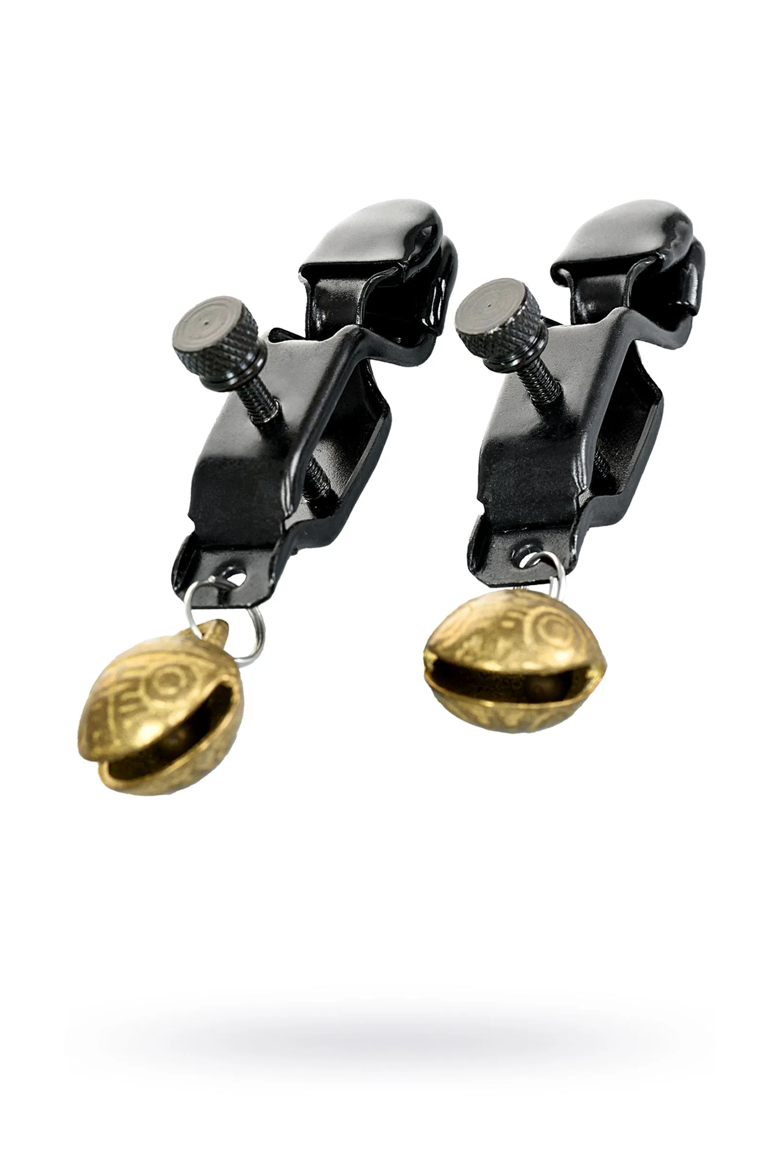 —Зажимы для сосков TOYFA Theatre, металл, черный с золотистым колокольчиком