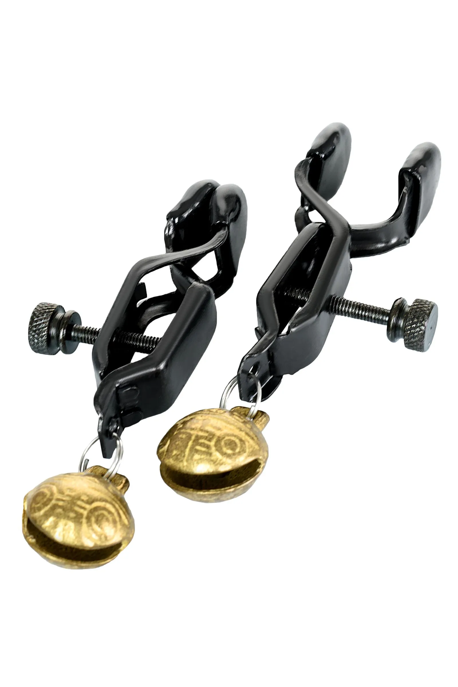Зажимы для сосков TOYFA Theatre, металл, черный с золотистым колокольчиком