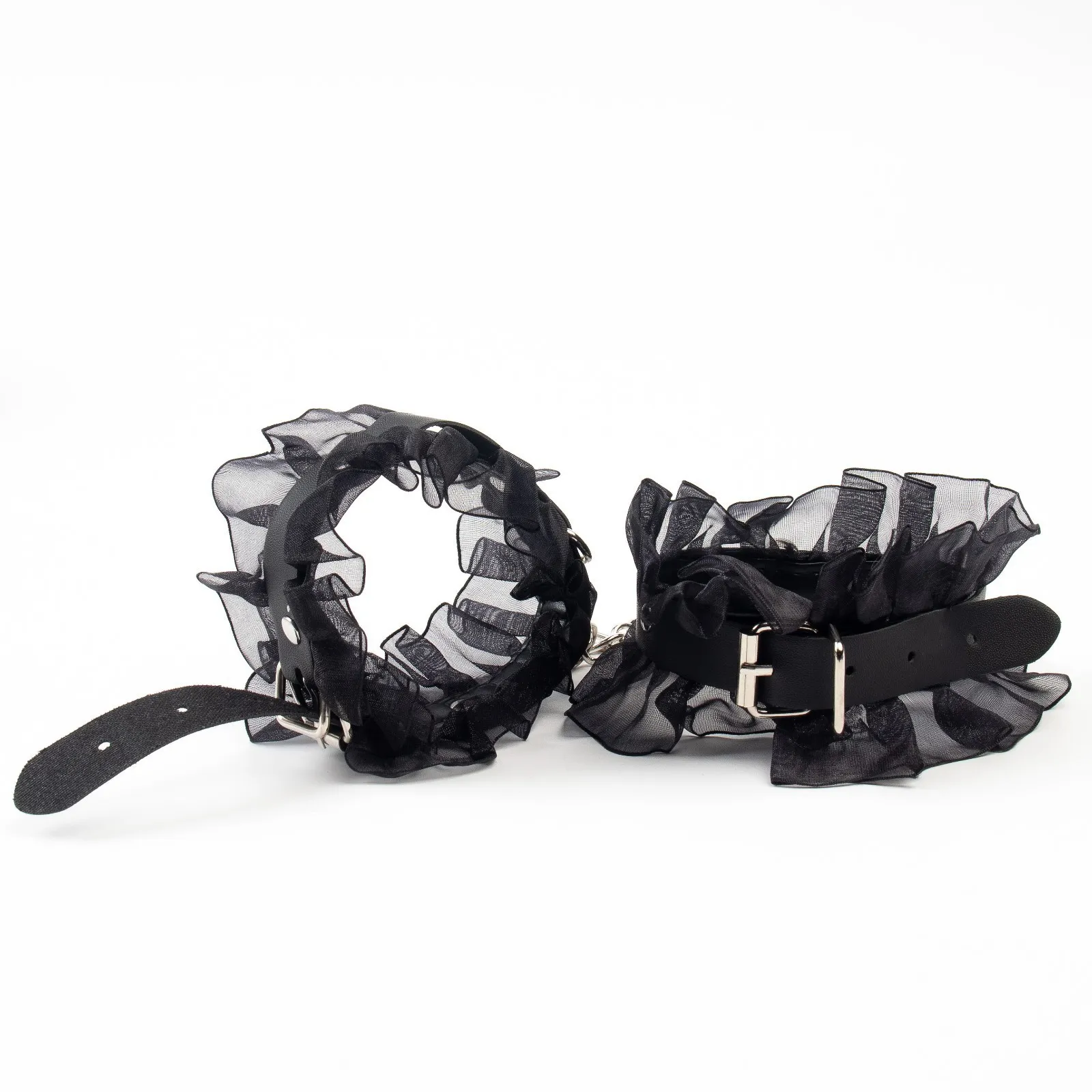 БДСМ набор выполнен из эко-кожи с кружевом - контраст нежности и грубости. Все ремни имеют систему регулировки. В состав набора входят 9 предметов: наручники, оковы, кляп, ошейник, поводок, верёвка, маска, зажимы для сосков, плеть.