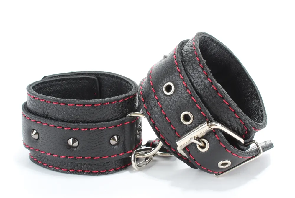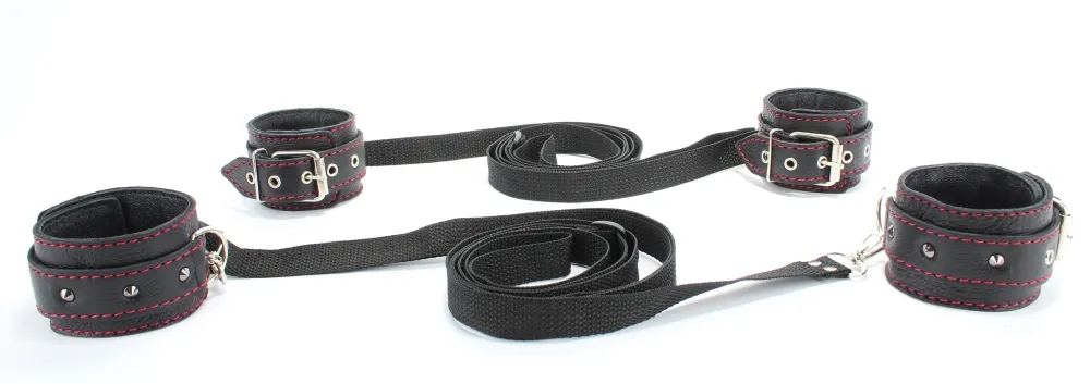 Идеальный бондажный набор для игр со связыванием в постели. Не нужно долго подготавливаться к ролевой игре, связывать веревки, затягивать их вокруг кровати и выдумывать сложные узлы. Секс-игрушка предусмотрела все за Вас. Бондажный набор состоит из нескольких комплектующих: две пары оков и и 2 ремнями на карабине, при помощи которых легко зафиксировать Вашу "жертву". Секс-игрушка откроет для Вас целый мир сексуальных утех с привязыванием и подчинением. Материал изготовления: кожа. Декорирован небольшими шипиками. Ширина оков - 5,2 см, длина - 27 см.