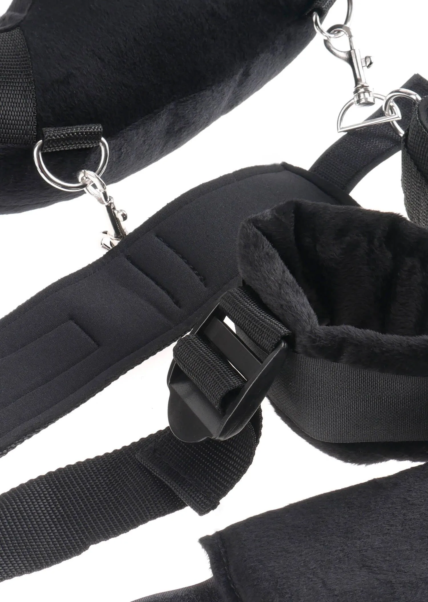 Набор для бондажа позволит Вам воплотить в жизнь все свои самые страстные фантазии! Прочные ремни будут удерживать ноги в нужном положении, когда Ваша любовная игра станет по-настоящему жаркой! А наручники точно не позволят сбежать Вашей избраннице, делая ее добровольной заложницей Вашей страсти. В комплекте есть специальная подкладка под шею, чтобы Ваша игра была комфортной для обоих партнеров. Ремни регулируются, также можно зафиксировать положение рук и ног в нужной точке по Вашему желанию.