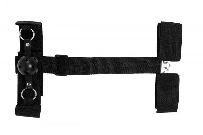 Уникальный девайс состоит из широких наручников и плотного кляпа с отверстиями для дыхания, соединенных между собой. Набор станет настоящей находкой для тех, кто только открывает для себя страстный и сладкий мир подчинения.