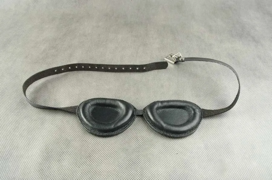 Очки глухие, женские с тонкой проставкой возле носа. Очки Фиксируется на голове при помощи кожаного ремешка с пряжкой. Размер регулируется.