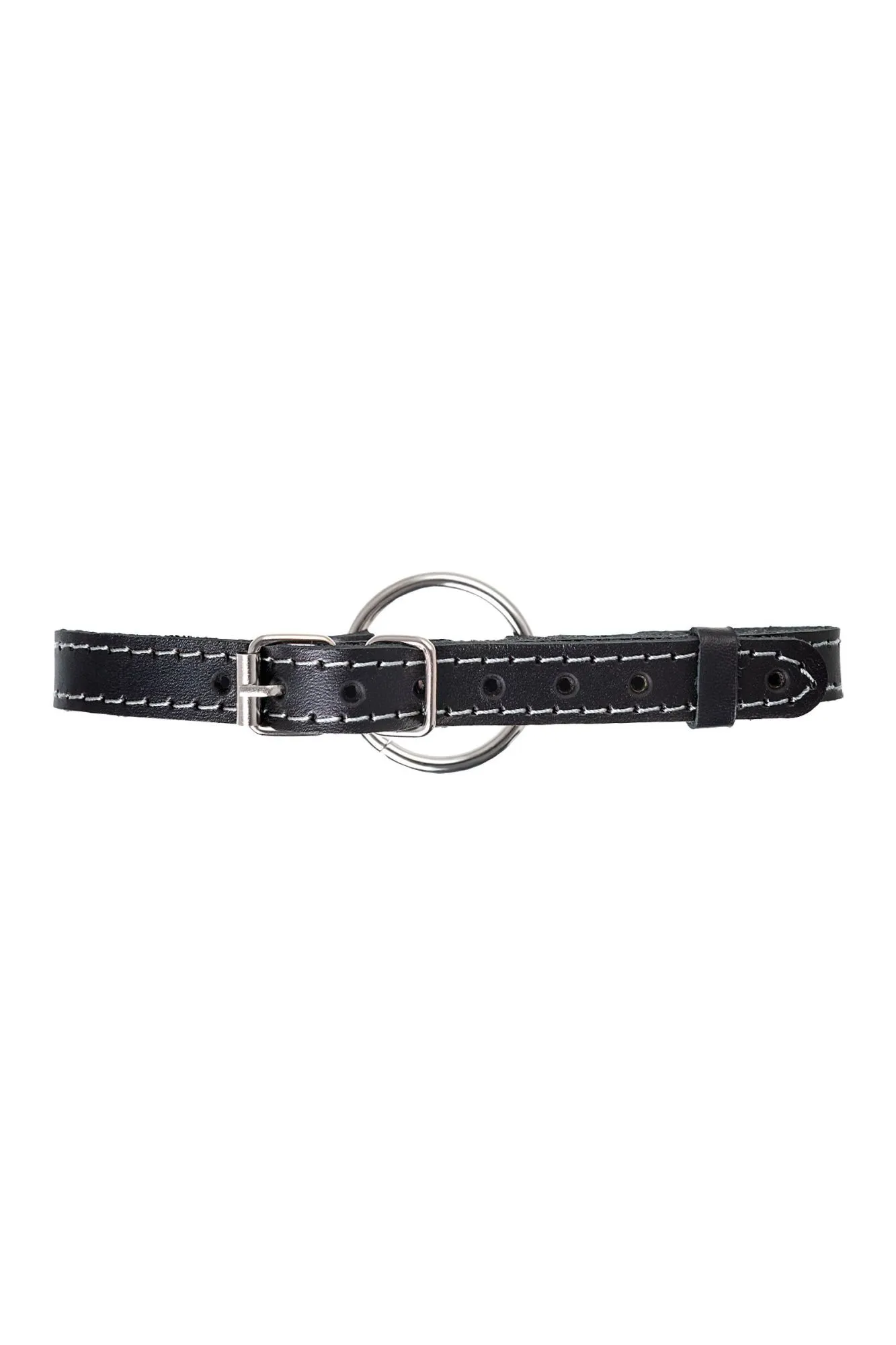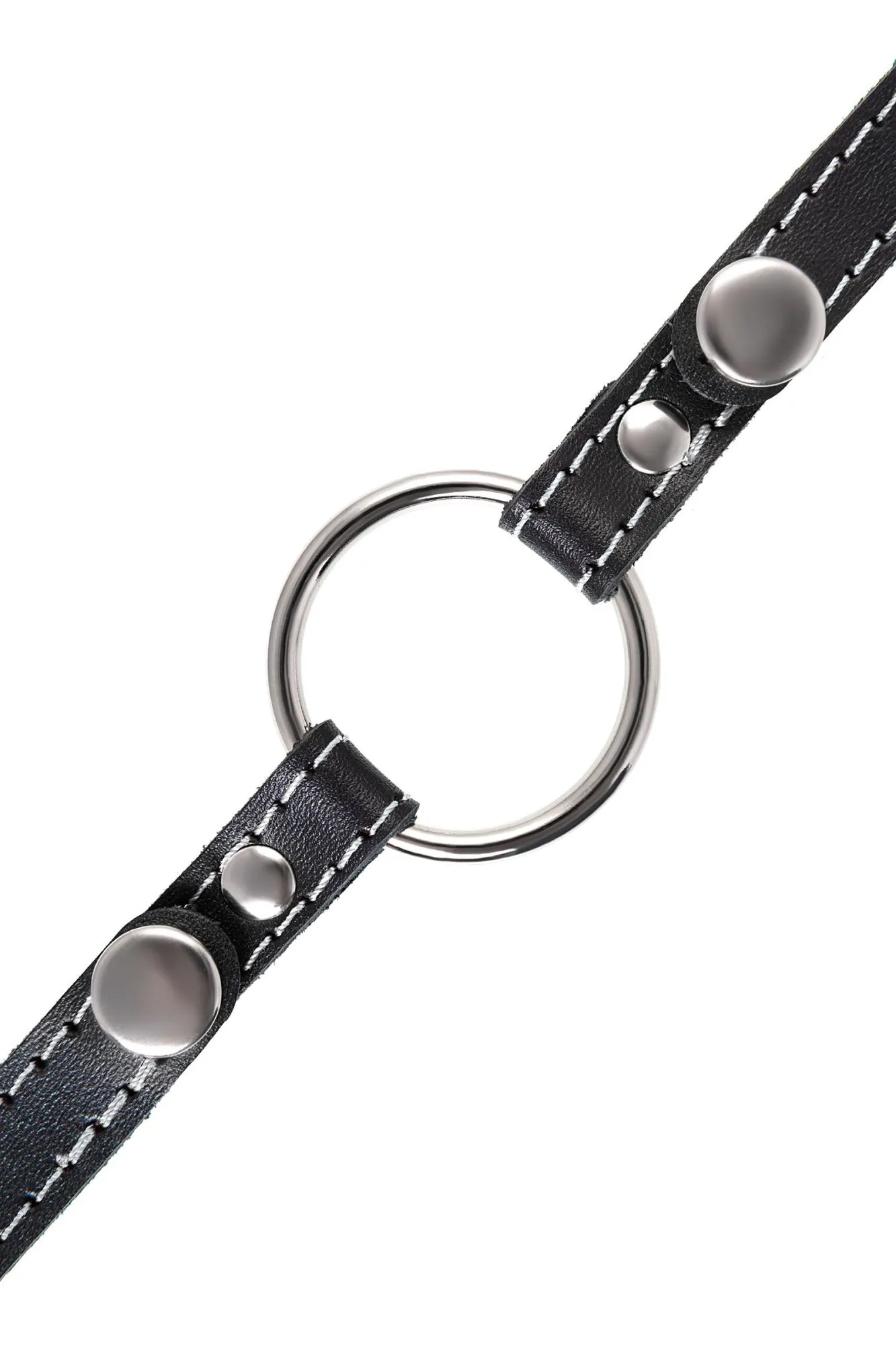Кляп Pecado BDSM, «Кольцо 39 мм», с белой строчкой, натуральная кожа, черный