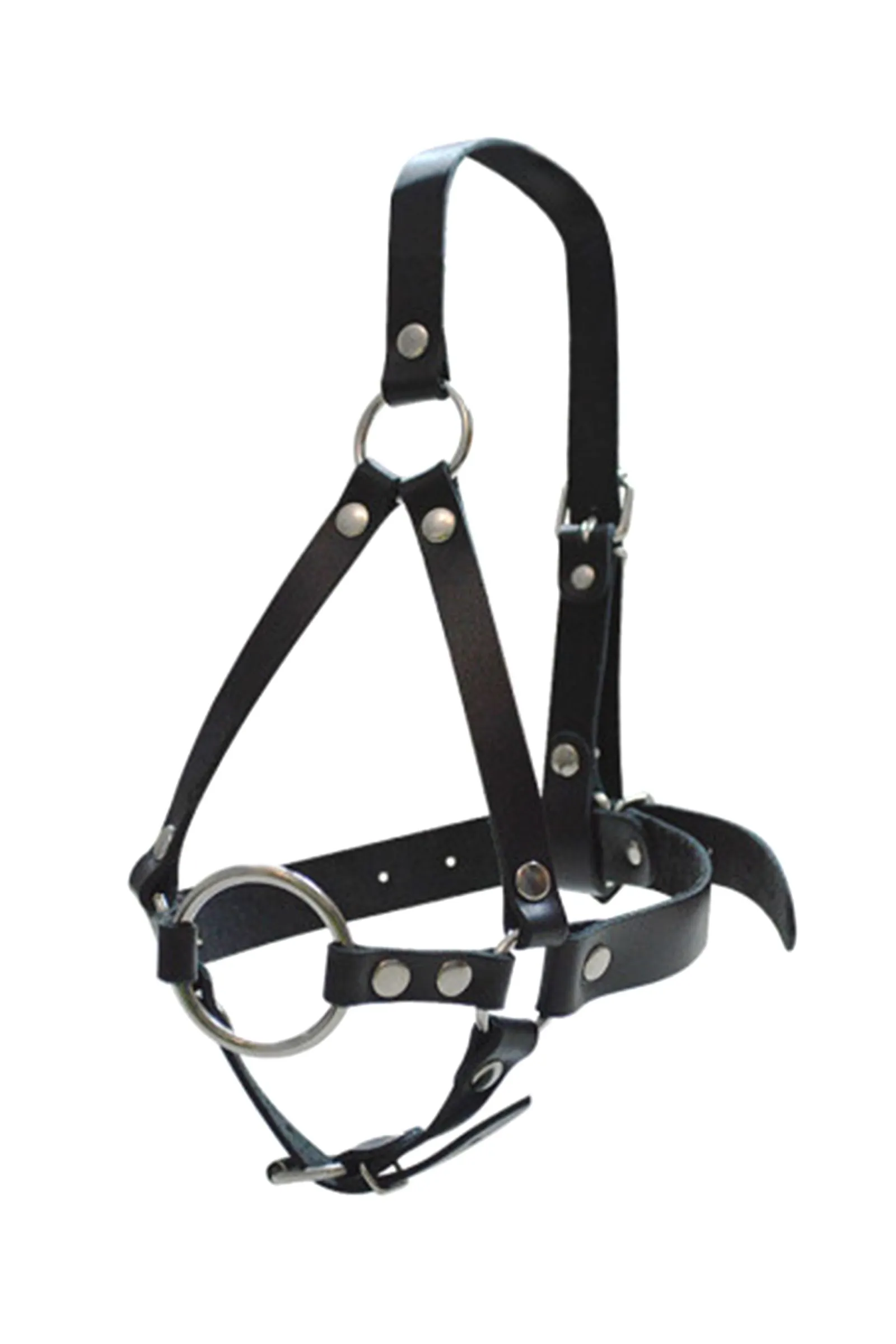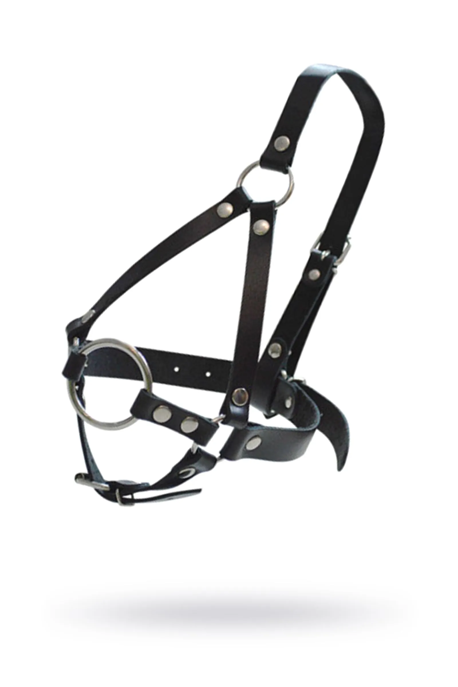 Кляп-рамка со сбруей на голову, кожа, черный