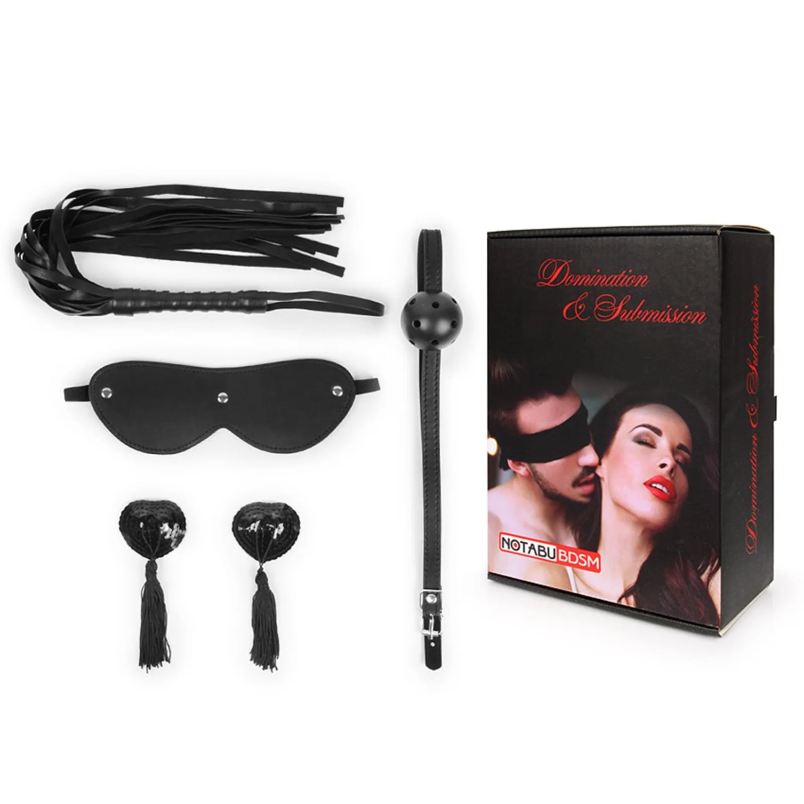 НАБОР БДСМ NOTABU, маска, кляп, пэстисы, плётка, чёрный