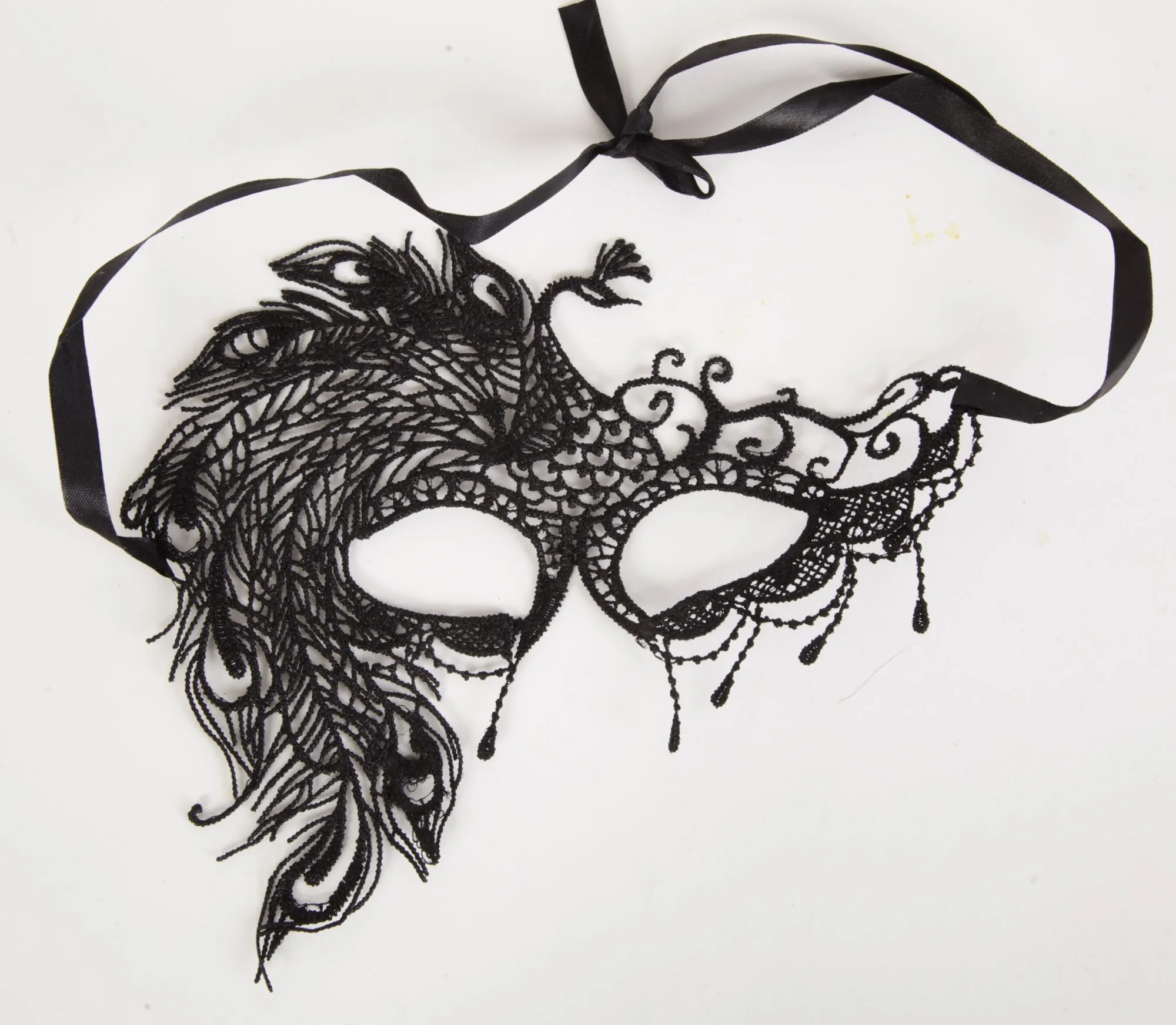 Кружевная маска в венецианском стиле с узором жар-птицы. Завязывается на атласные ленты. Размеры маски: длина- 22 см, ширина - 18 см. Упаковка- пакет.
