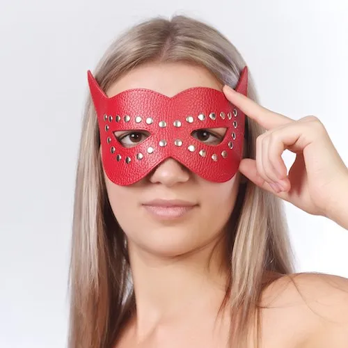 —Маска на глаза с разрезами и заклепками красная 3087-2
