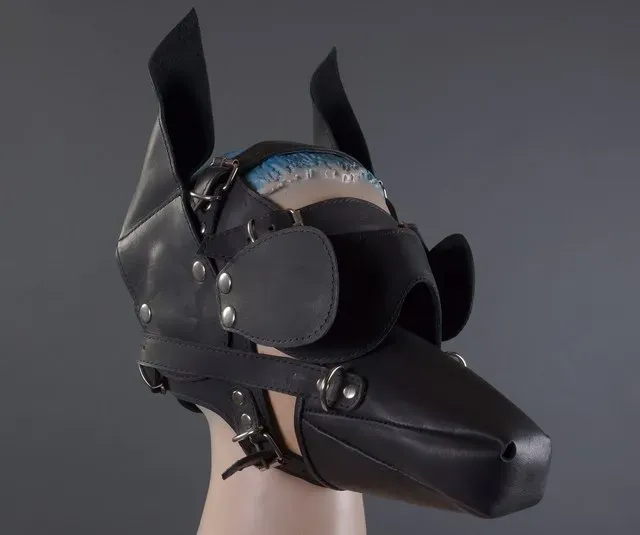 Маска-шлем с ушками, шорами, очками и намордником. Размер регулируется ремнями.
