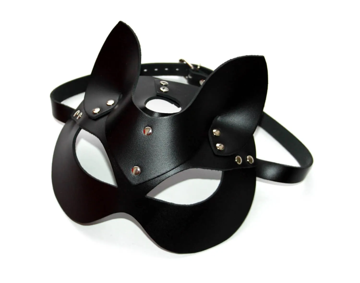 Классическая маска кошки с милыми ушками выполнена из натуральной кожи черного цвета. С ней Вы сможете перевоплотиться в сексуальную и дерзкую кошечку, которая способна в момент вскружить голову своему мужчине и заставить его сгорать от страсти. Маска станет отличным дополнением как к карнавальному, так и к ролевому эротическому костюму. Она застегивается при помощи ремешка, размер можно регулировать.