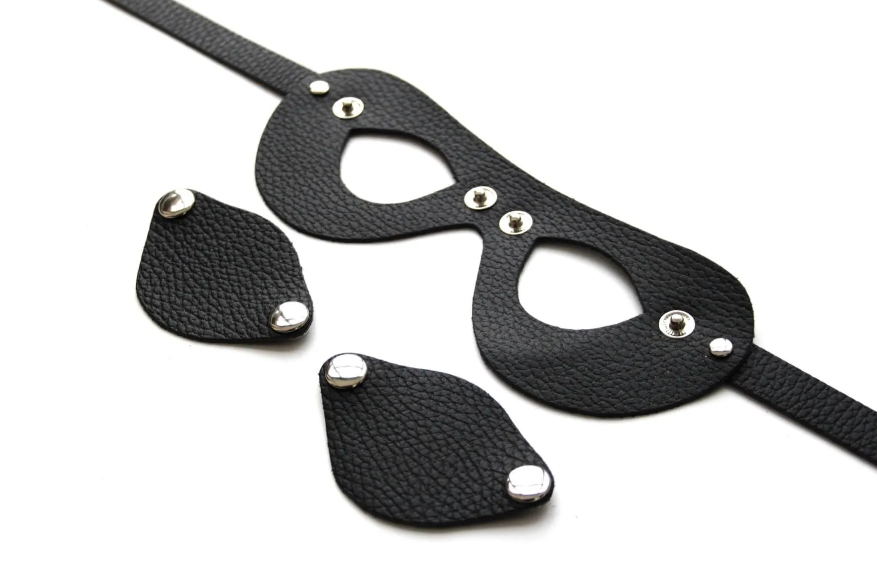 Очки-шоры сделаны из натуральной кожи черного цвета толщиной в 1.4 мм. Этот аксессуар поможет паре разнообразить свои интимные игры и получить новые ощущения. Маску можно использовать как дополнение к ролевому эротическому костюму, чтобы придать своему образу таинственности. Также при помощи нее Вы сможете погрузить своего партнера в полную темноту. Это обострит его ощущения и усилит чувствительность, поэтому каждое Ваше прикосновение к нему будет неожиданным и невероятно приятным.