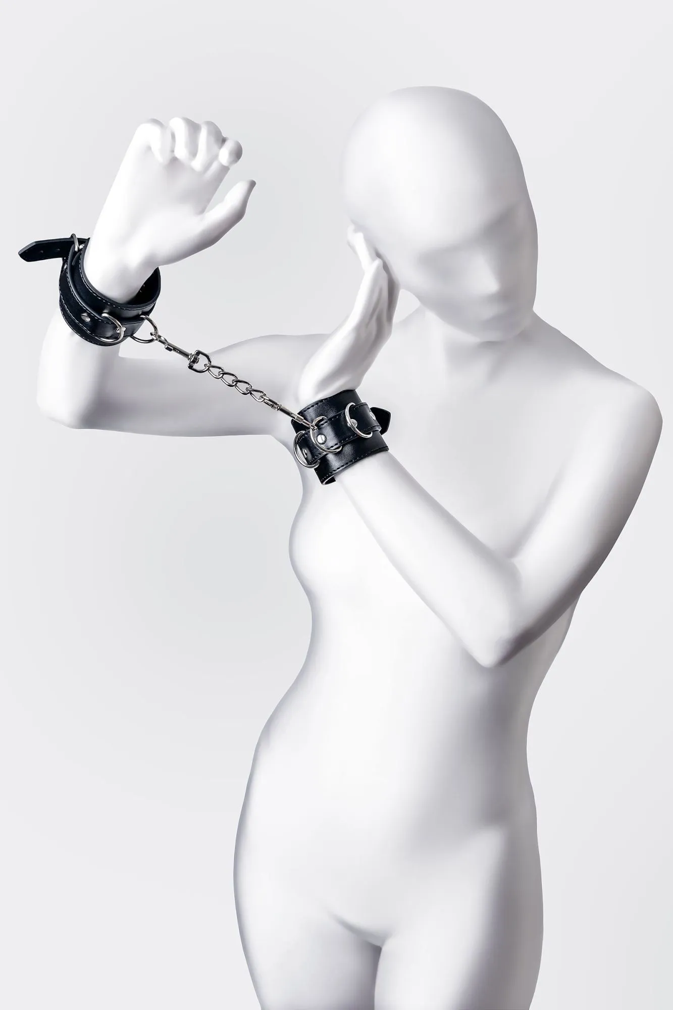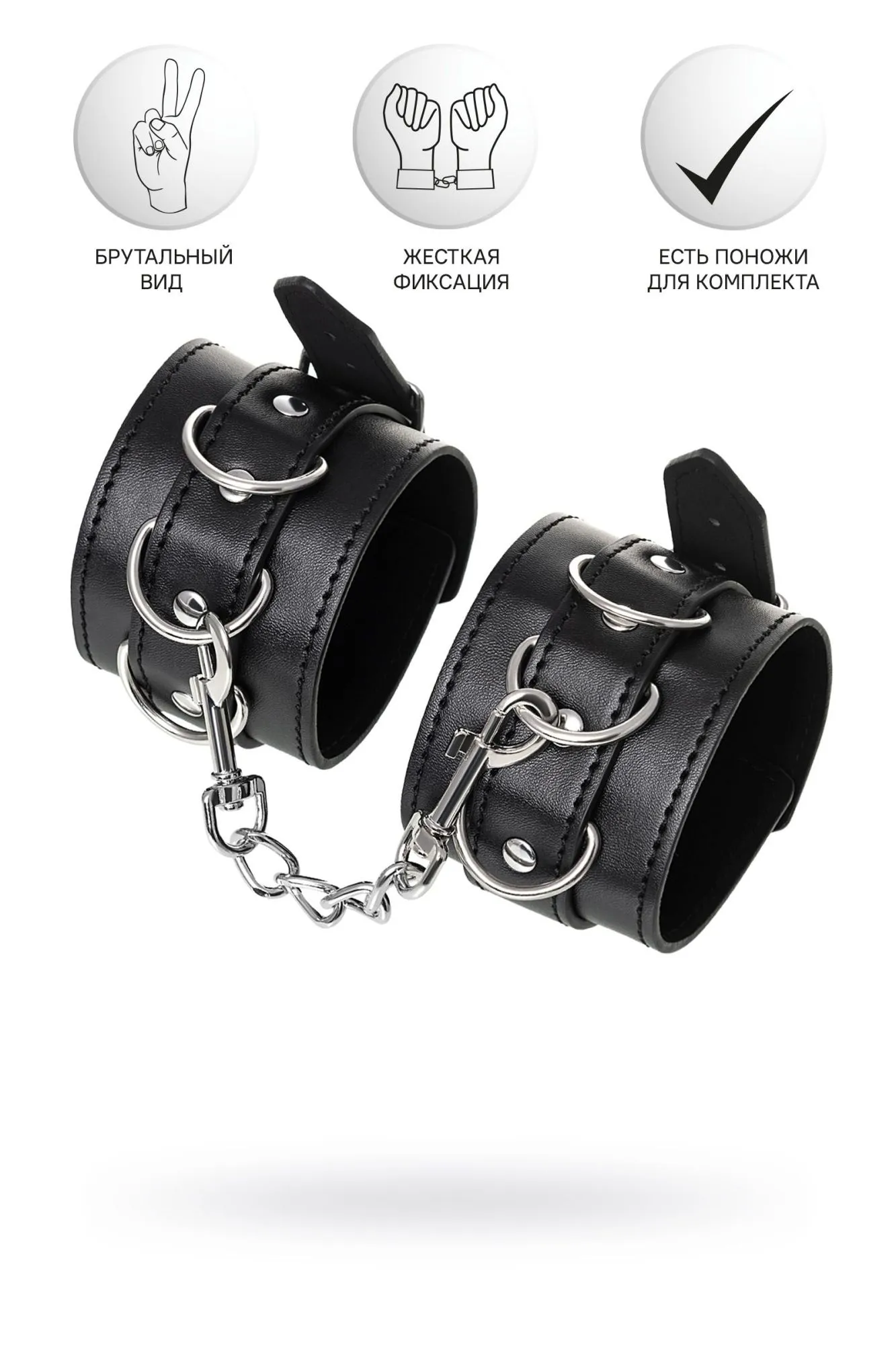 Черные наручники с металлической отделкой – брутальные ограничители свободы. К тому же, они на самом деле весьма жестко обхватывают руки и надежно соединяют их между собой цепочкой на карабинах. Три кольца для крепления позволяют дополнить наручники аксессуарами и использовать различные варианты фиксации. Длина наручников позволяет использовать их практически на любой размер рук. Отрегулировать размер и силу обхвата легко с помощью ремешка и металлической пряжки. Эти наручники с металлической отделкой – настоящий стиль и функционал. Теперь Доминант покажет, что значит грубое обращение и полный контроль над свободой. Материал: PU кожа, металл Цвет: черный Длина: 20 см Ширина: 6 см Длина сцепки: 15,5 см