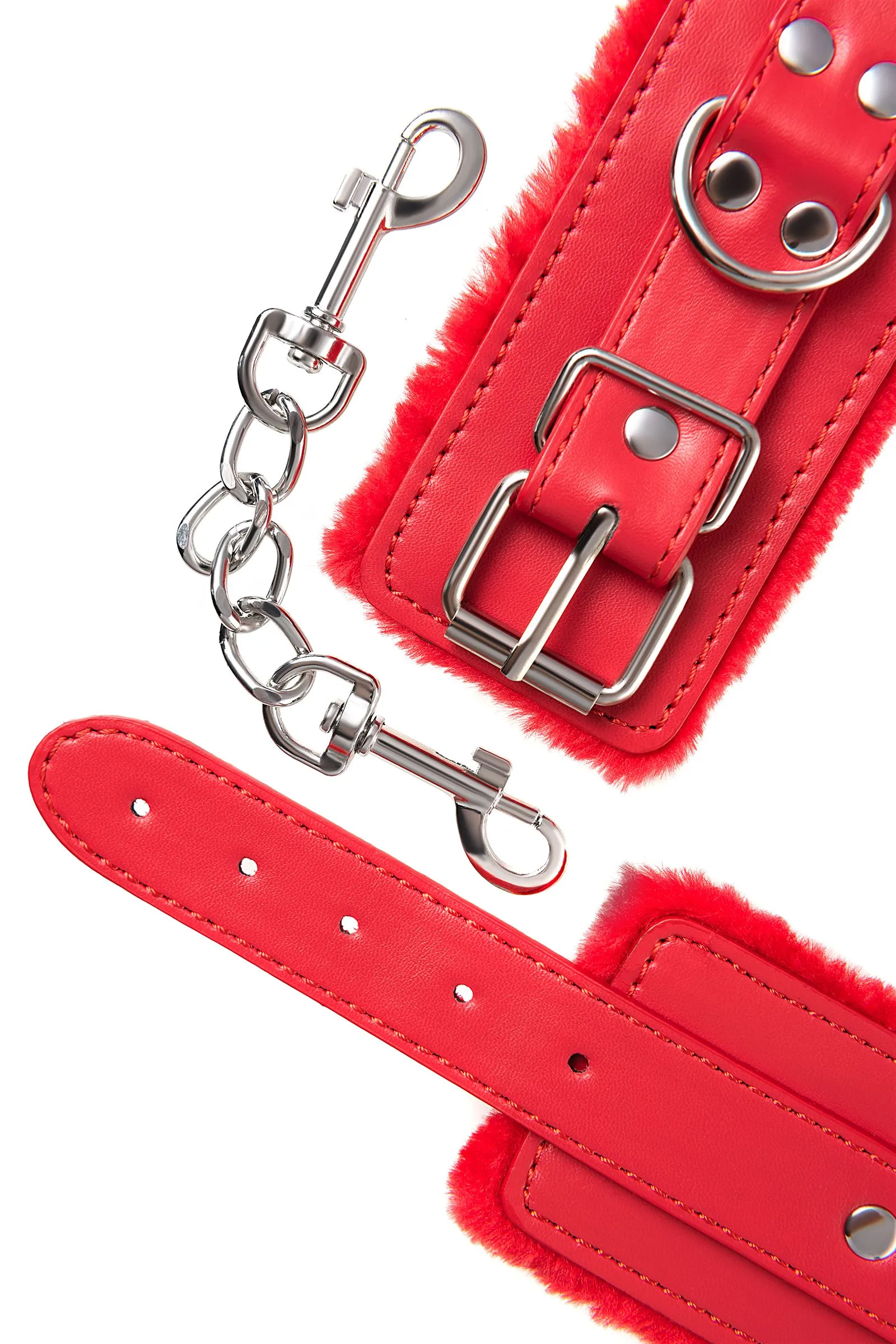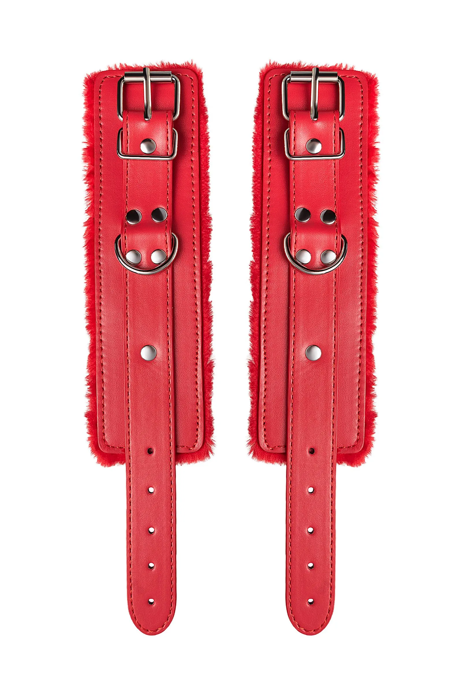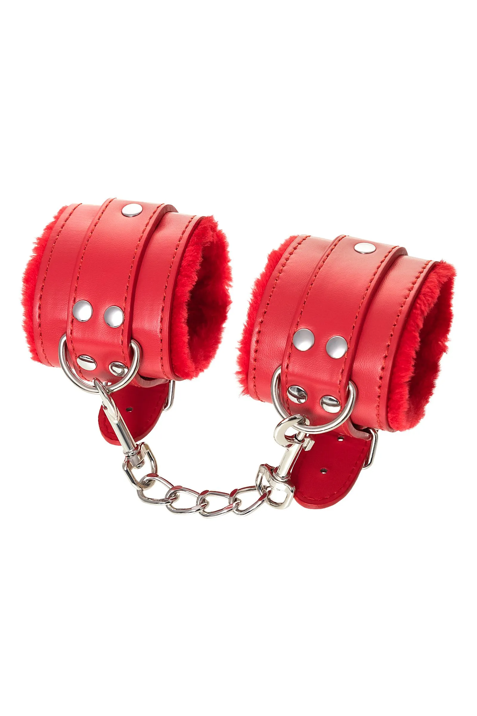 Наручники яркого красного цвета с металлической отделкой говорят вовсе не об агрессии. Эти произведения искусства говорят о страсти, которую можно проявить, но только с разрешения Доминанта. Подклад из искусственного меха делает ношение этих наручников более комфортным, но расслабиться в них не получится – цепочка на карабинах сильно ограничивает свободу действий. Длина наручников позволяет использовать их практически на любой размер рук. Отрегулировать размер и силу обхвата легко с помощью ремешка и металлической пряжки. Наручники – классический предмет для игры в подчинение, обязательный для начинающих и опытных поклонников БДСМ. Дополните комплект аксессуарами – ошейником, кляпом, оковами и продемонстрируйте что значит грубое обращение и полный контроль над свободой. Материал: PU кожа, металл Цвет: красный Длина: 19,5 см Ширина: 5,5 см Длина сцепки: 15,5 см