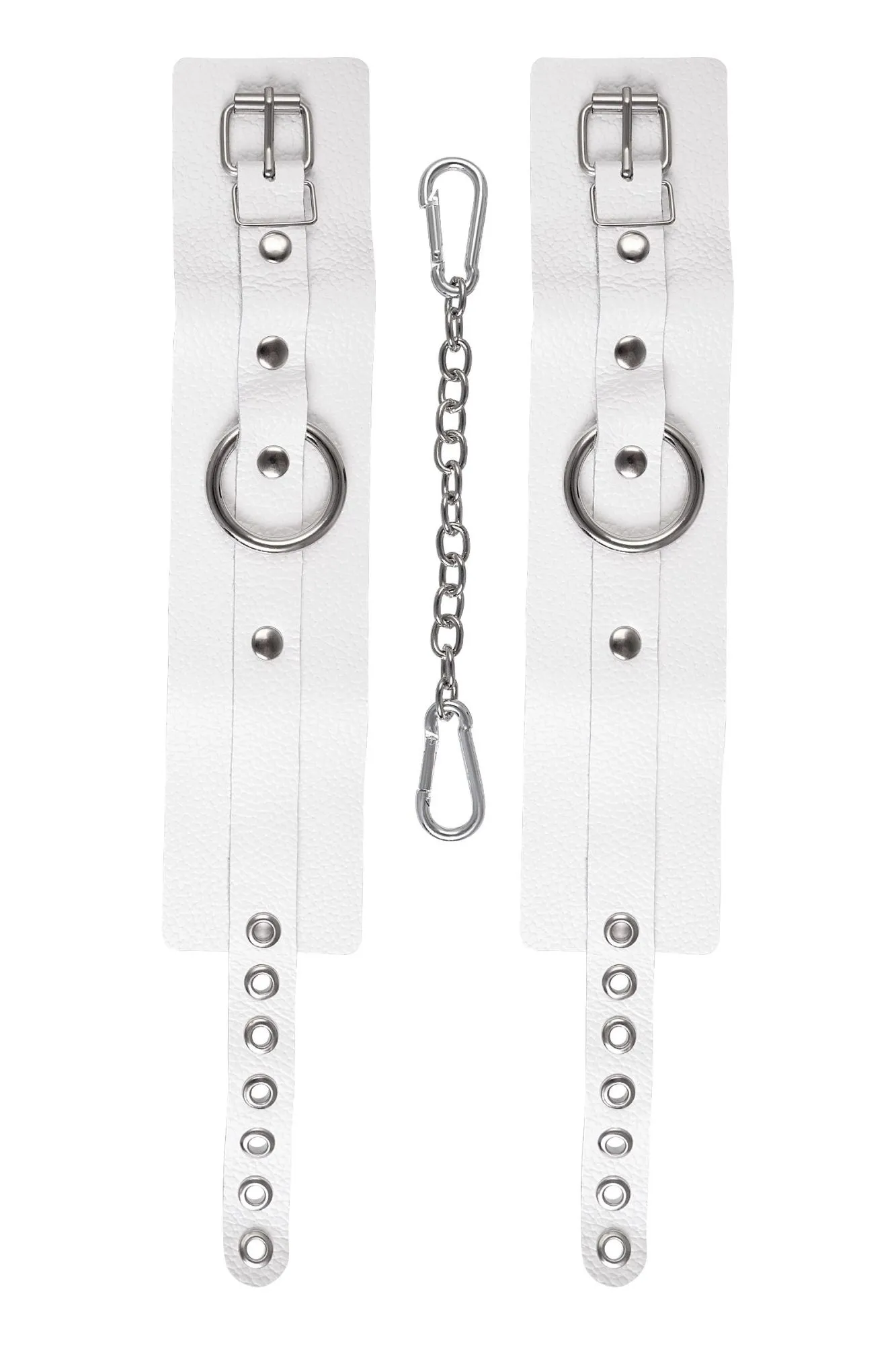 Самый мягкие оковы из всей линейки российского производителя Pecado. Сексуальный атрибут изготовлен из безопасной и натуральной кожи. Насыщенно белый цвет и терпкий аромат материала повышают градус возбуждения в процессе ролевых игр. Манжеты и ремешки девайся очень тактильно приятные. Они не мнутся, не тянутся и обладают повышенной износостойкостью. Вся фурнитура высокого качества. На тонких ремешках имеются отверстия с люверсами, для подбора нужного обхвата. Благодаря стальной застежке аксессуар легко застегивается и расстегивается. Между собой оковы присоединяются с помощью карабинов и короткой цепочки. При необходимости ее можно снять и заменить на более длинный вариант. Используется для того, чтобы обездвижить партнера и зафиксировать ноги в необходимом положении. Подходит как опытным, так и начинающим парам. ● 100% натуральная кожа. ● Ручная работа. ● Износостойкий, тактильно приятный материал. ● Надежная высококачественная фурнитура. ● Универсальный размер. ● Длина манжет – 25 см, ширина манжет - 5,5 см, длина сцепки – 24 см.