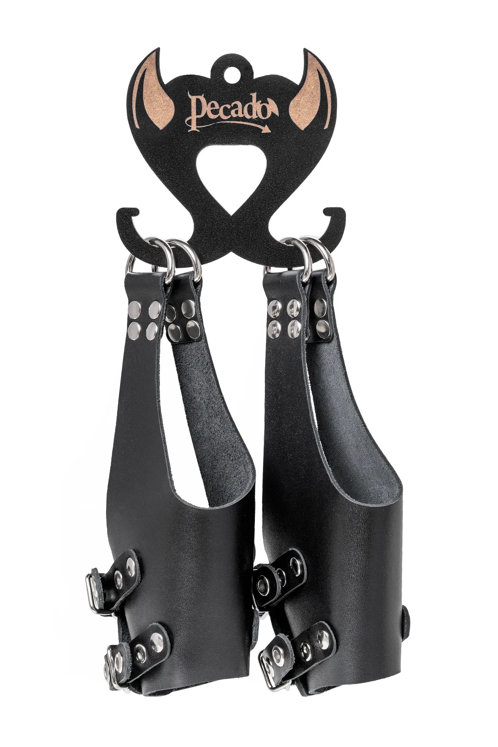 Подвес от Pecado – безопасный помощник для воплощения всех Ваших фантазий. Используется для БДСМ-игр с элементами подвеса и полу подвеса. Данная модель выполнена из жесткой, натуральной кожи вручную. Материал прочный, плотный и в меру толстый. Аксессуар легок в применении. Фиксируется с помощью застежки и ремешка с широким запасом регулировок. Благодаря анатомической форме, удобно обхватывает руки нижнего партнера в положении вверх. При правильном использовании не нарушает кровообращения и исключает вероятность получения травмы. ● 100% натуральная кожа. ● Износостойкий, тактильно приятный материал ● Надежная высококачественная фурнитура. ● Универсальный размер. ● Ширина манжет 6 см, высота манжет 23 см, длина манжет 22,5 см.