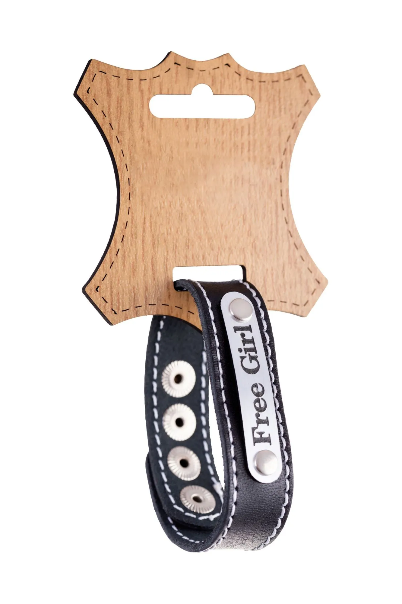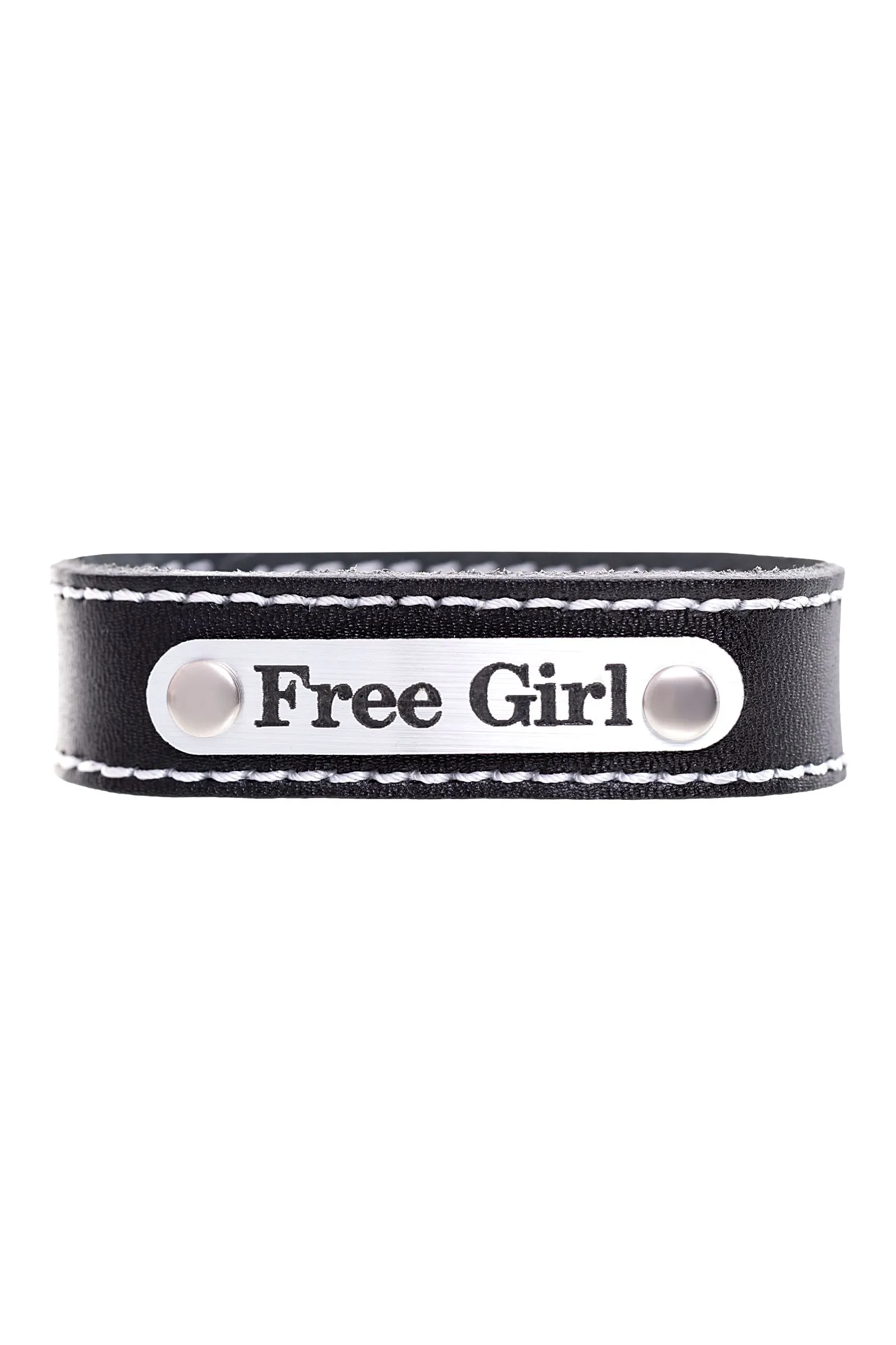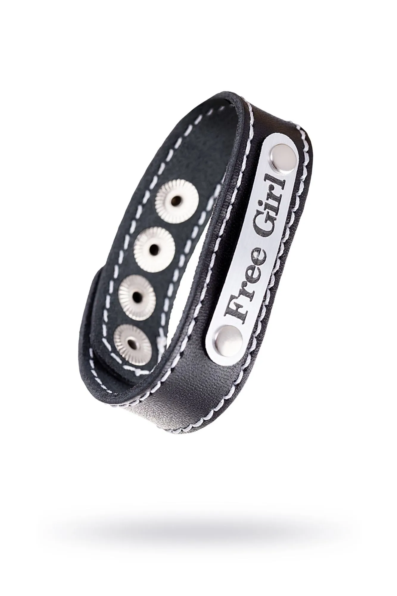 —Браслет Штучки-дрючки с белой строчкой, кожанный, черный