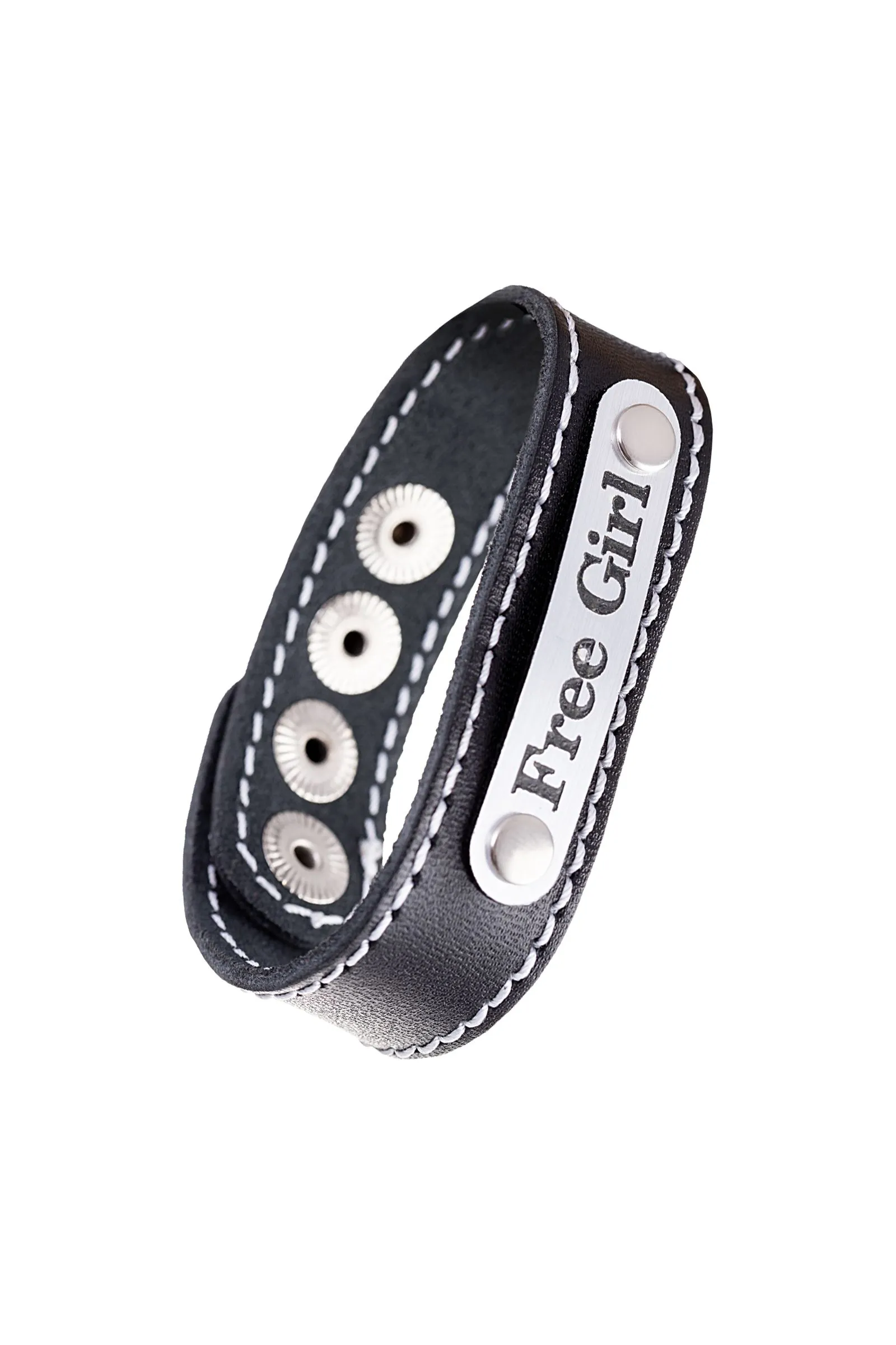 Браслет Штучки-дрючки с белой строчкой, кожанный, черный