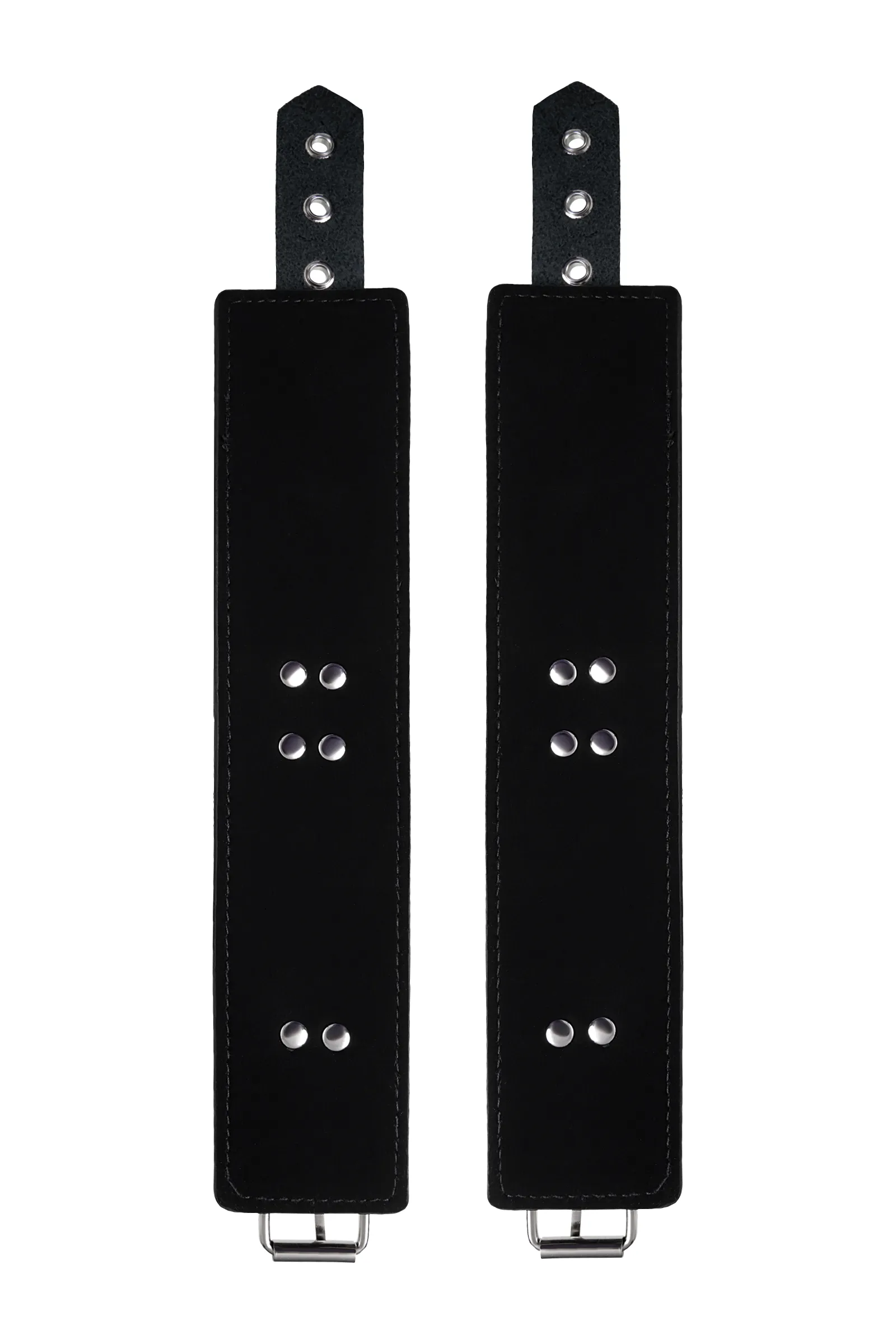 Изготавливаются из натуральной кожи с велюровой подкладой. При изготовлении использована фурнитура с никелевым покрытием. Между слоем основы и подкладой проложена мягкая прокладка. Соединяются между собой коротким ремешком с двумя карабинами на концах. Не нарушают кровообращение, надёжно фиксируются на запястьях. Размер универсальный.