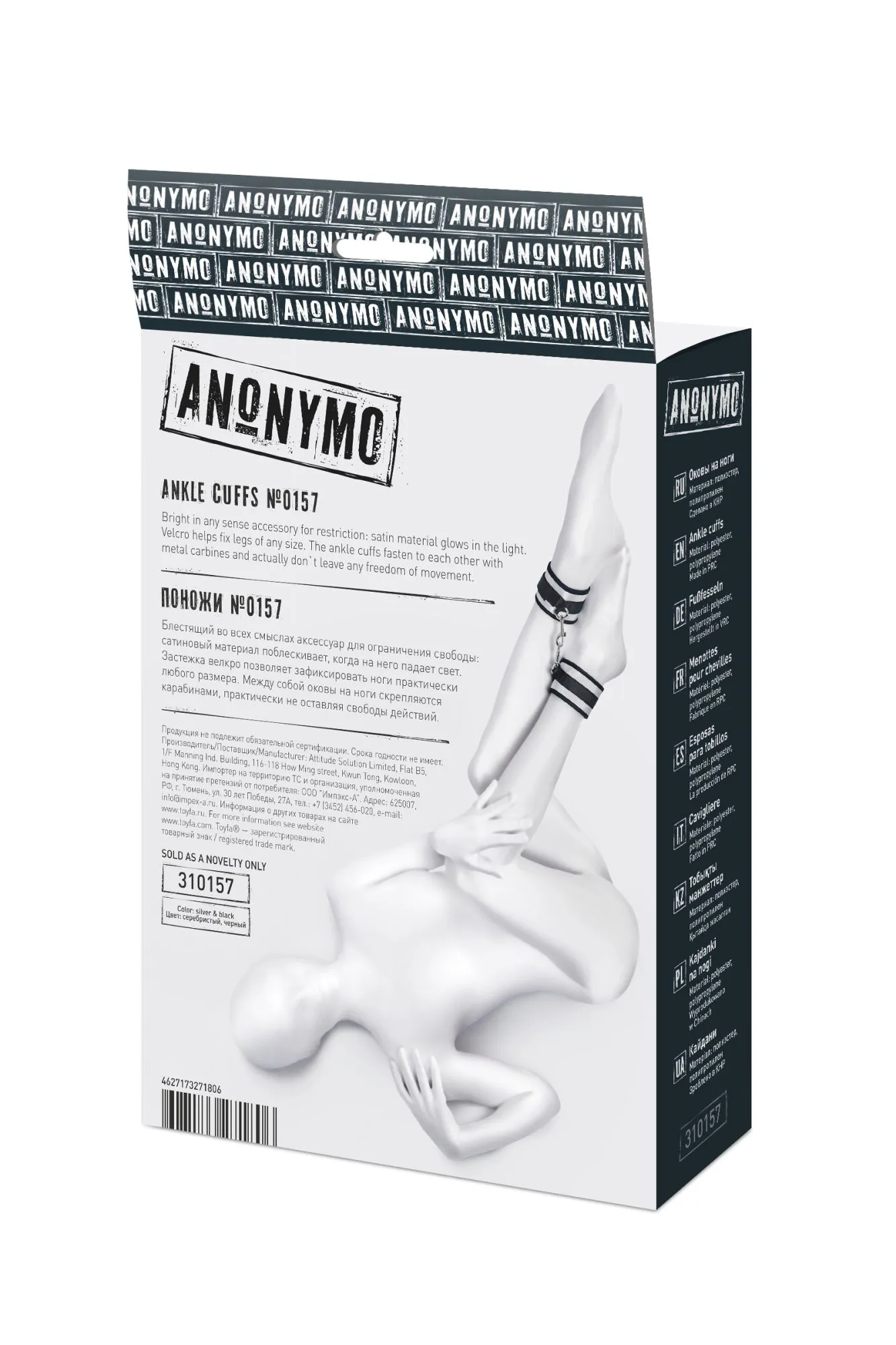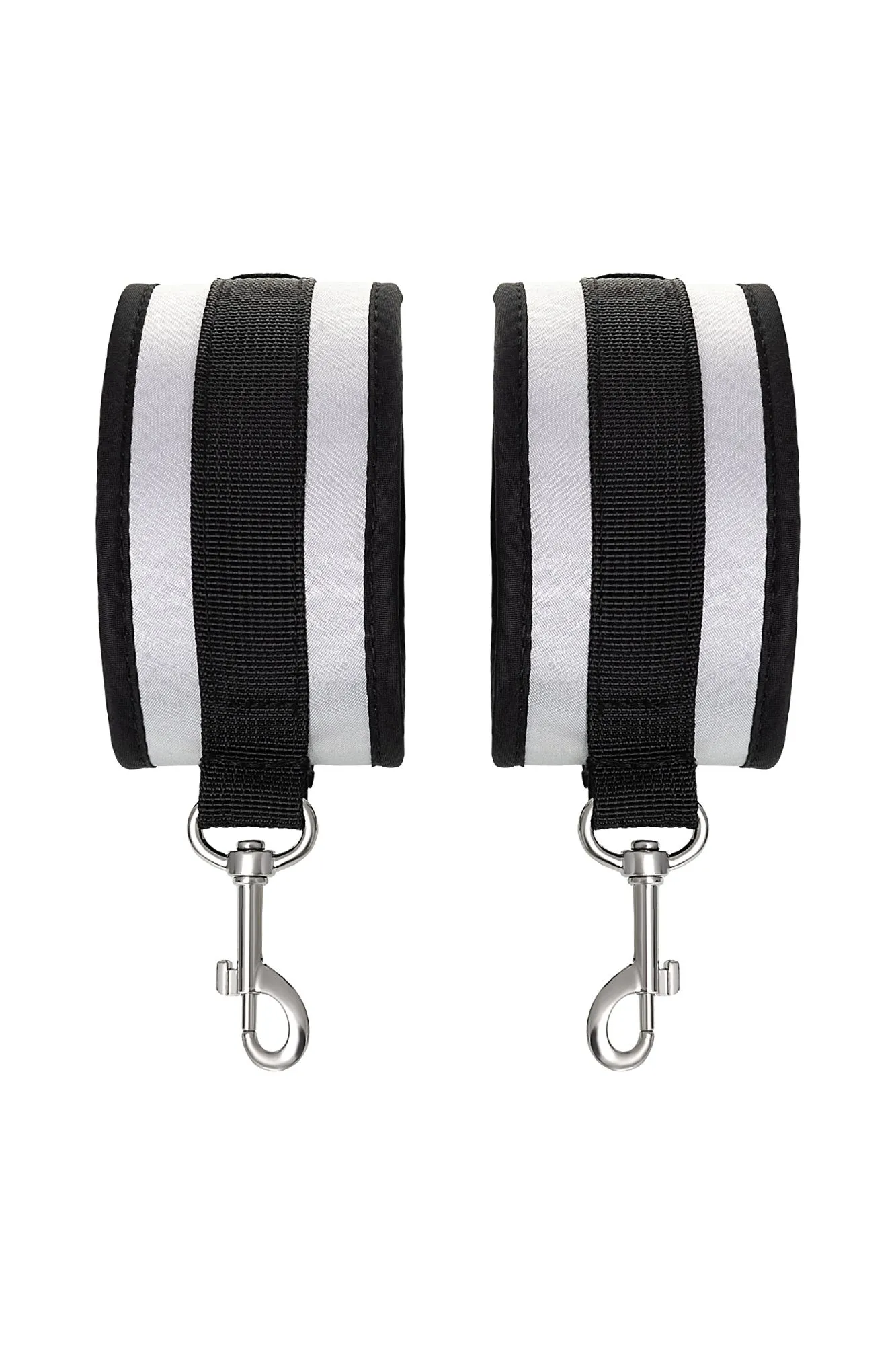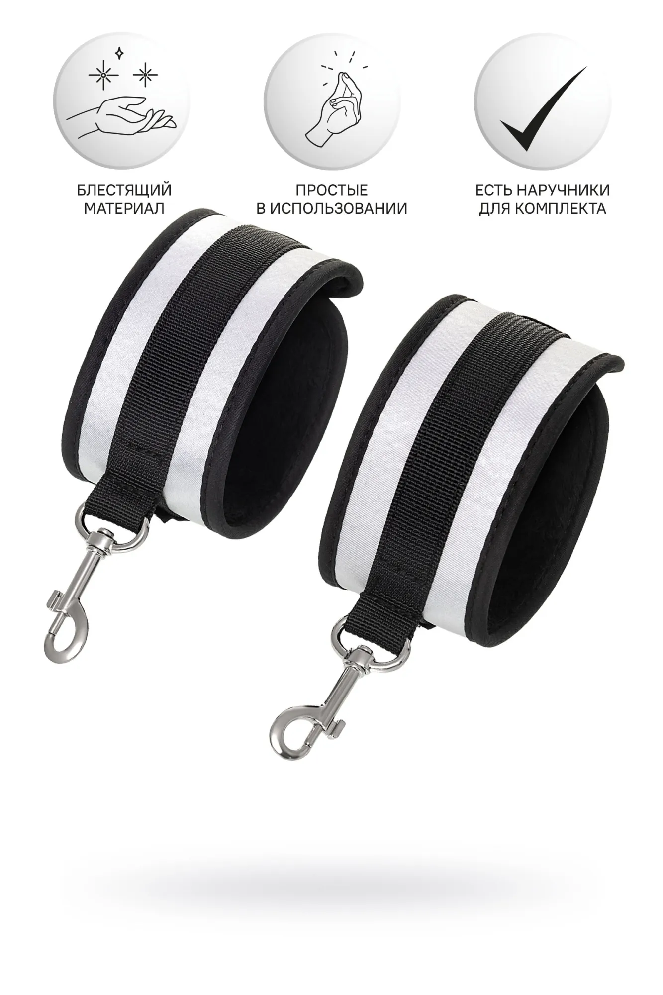 Оковы — классический предмет для игры в подчинение, обязательный для начинающих и опытных поклонников БДСМ. Блестящий во всех смыслах аксессуар для ограничения свободы – сатиновый материал поблескивает, когда на него падает свет. Необычное сочетание серебристого и черного, совсем нехарактерное для классического исполнения аксессуаров в стиле БДСМ, придает изюминку и новизну. Подчиненный с таким аксессуаром выглядит неотразимым. Застежка велкро позволяет зафиксировать ноги любого размера. Между собой поножи скрепляются карабинами, практически не оставляя свободы действий. Никакого послабления, только полное подчинение своему Доминанту. Используйте дополнительно цепочку для расширенных возможностей фиксации положения ног. Начните игру в подчинение с этим аксессуаром, и вы поймете, как развивать свою чувственность с помощью ограничения свободы одного из партнеров. Дополните комплект аксессуарами — ошейником, кляпом, наручниками и продемонстрируйте что значит грубое обращение и полный контроль над свободой. Материал: полиэстер, полипропилен Цвет: черно-серебристый Длина: 28,5 см Ширина: 5,5 см Длина сцепки: 8 см