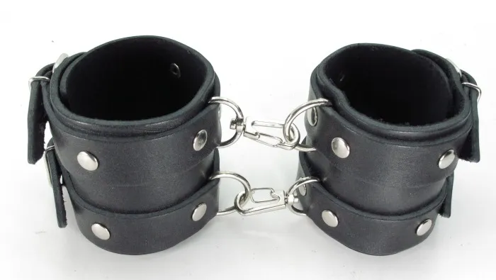 Оковы из кожи черные с двумя пряжками 56007ars