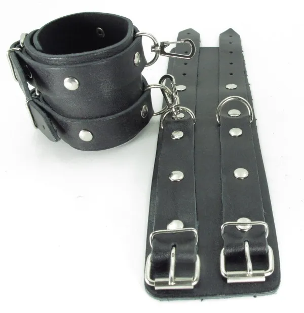 —Оковы из кожи черные с двумя пряжками 56007ars