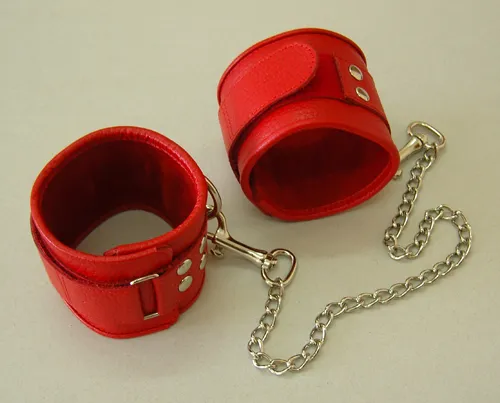 Изготавливаются из натуральной кожи с велюровой подкладой. Легко застёгиваются и расстёгиваются с помощью «липучки». Между слоем основы и подкладой проложена мягкая прокладка. Соединяются между собой цепочкой длиной 35 см с двумя карабинами на концах. Не нарушают кровообращение, надёжно фиксируются на щиколотках. Размер универсальный.