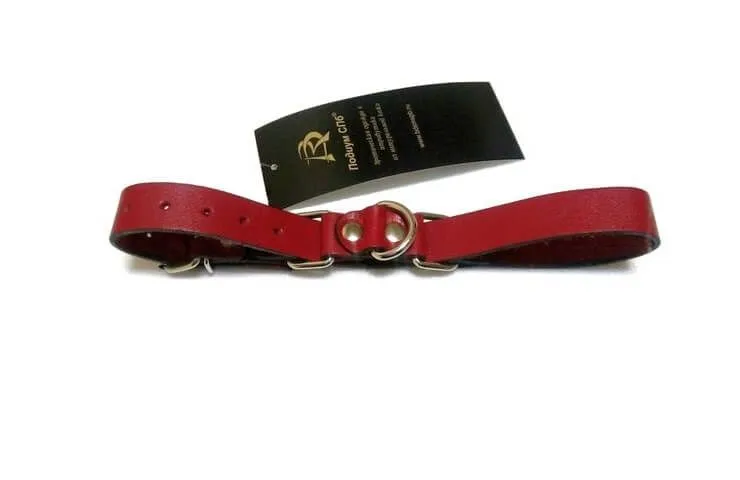 Наручники представляют собой ременную полосу из красной натуральной кожи с полукольцом в виде “восьмерки”. Они легко затягиваются на любом запястье и застегиваются на ремешок с пряжкой. У наручников подвижная фиксация, поэтому Вы сможете поэкспериментировать с различными позами во время игры. Также благодаря металлическому полукольцу Вы сможете присоединять к наручникам при помощи карабина другие БДСМ аксессуары.