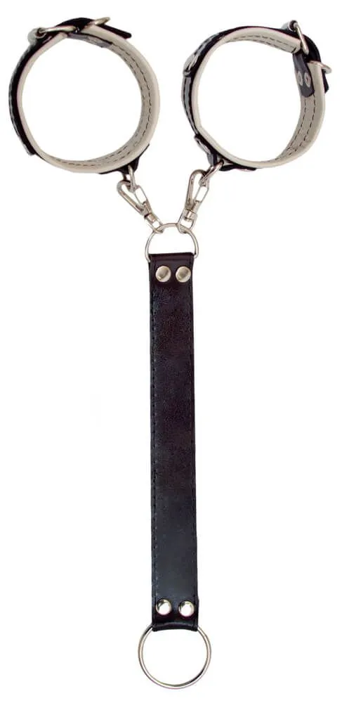 —Наручники декоративные Индиго на кожаном поводке, черно-белые