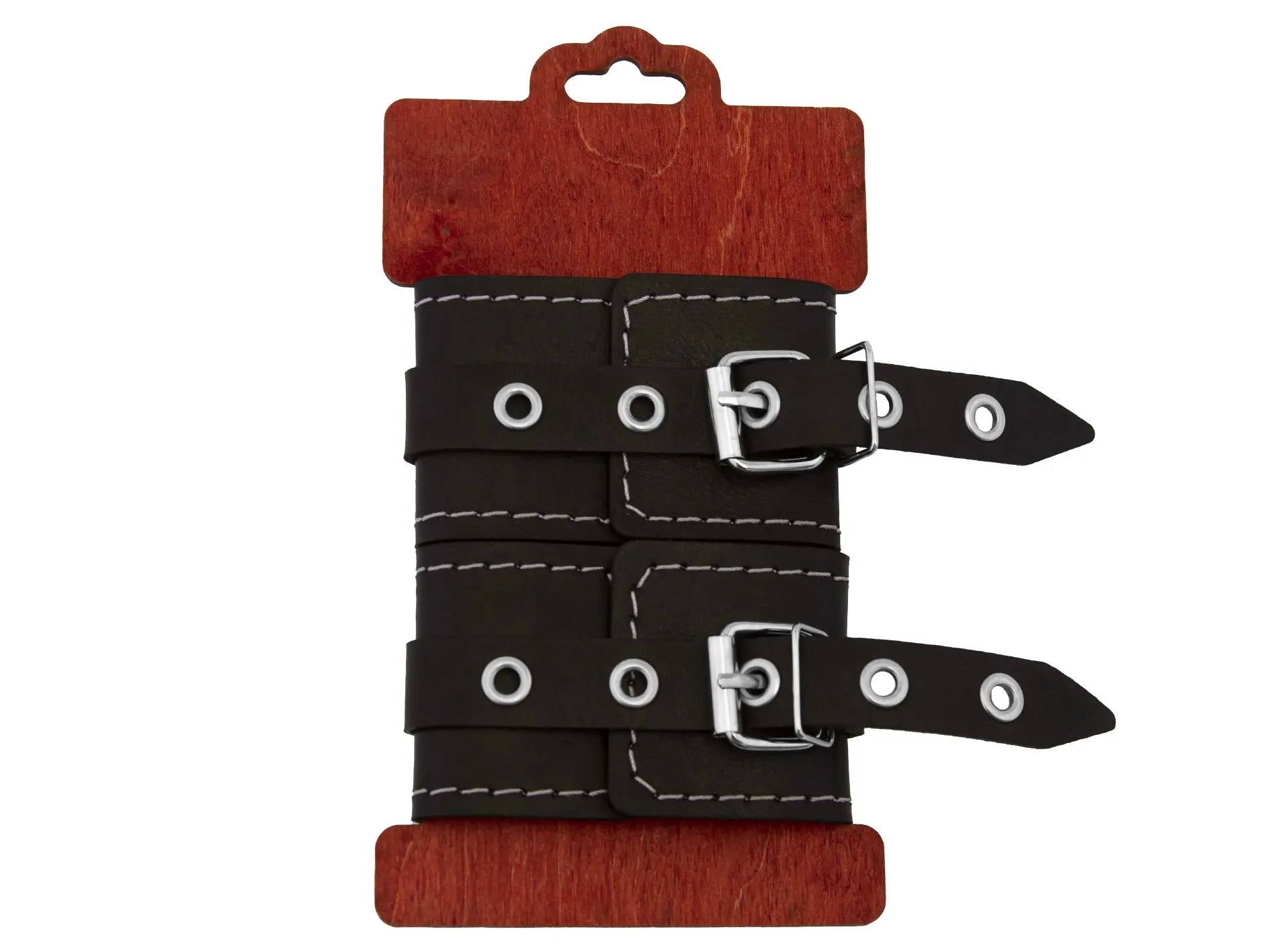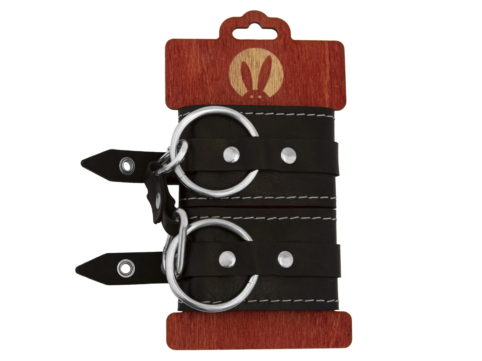 Наручники декоративные PinkRabbit из натуральной кожи, с белой строчкой