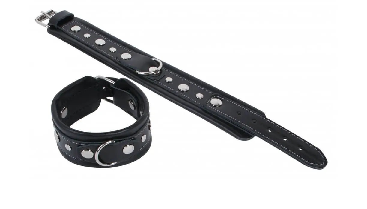 Наручники от компании Fire Horse помогут Вам сковать своего партнера, чтобы полностью покорить его своей воле. Они выполнены из натуральной кожи черного цвета и отличаются завидной прочностью, способной выдержать любые проявления неповиновения со стороны партнера или долгий воспитательный процесс. Также они декорированы металлическими клепками, придающими им более брутальный вид. На каждом наручнике есть D-кольцо, за которые их можно соединить между собой или же присоединить к ним другие бондажные аксессуары при помощи карабинов или стяжек.